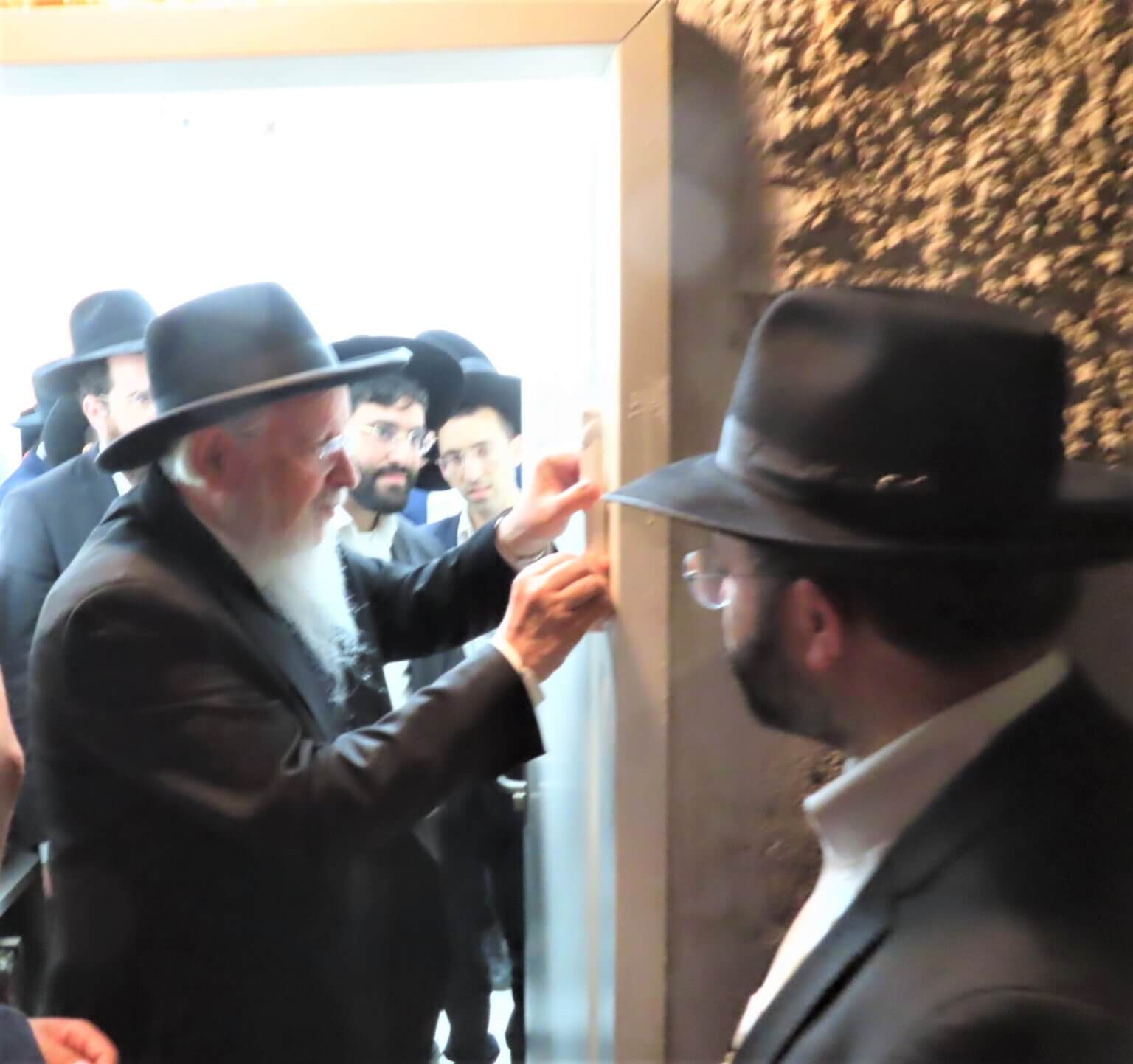 ביום רביעי ט' בניסן הונחה אבן הפינה ע"י נשיא הקהילה הגאב"ד רבי שלמה ידידיה זעפראני שליט"א שהגיע במסירות רבה לקבוע מזוזה במשכן החדש, ואף מסר שיעור מיוחד בעניני חג הפסח, לאחמ"כ פצחו בני הקהילה בשירה ובתחינה 'הוא יבנה בית לשמי' בהתרגשות גדולה ובשמחה של מצוה, גדול היה המעמד לכבודה של תורה.