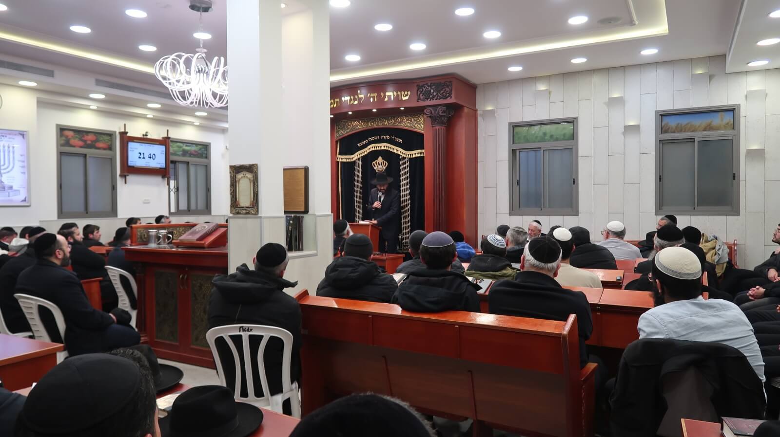האדמו"ר רבי פנחס אבוחצירא שליט"א מסר שיחת חיזוק בביהמ"ד 'שמחת אריה' בטבריה, בהשתתפות קהל רב מבני העיר אשר באו להתחזק מדבריו