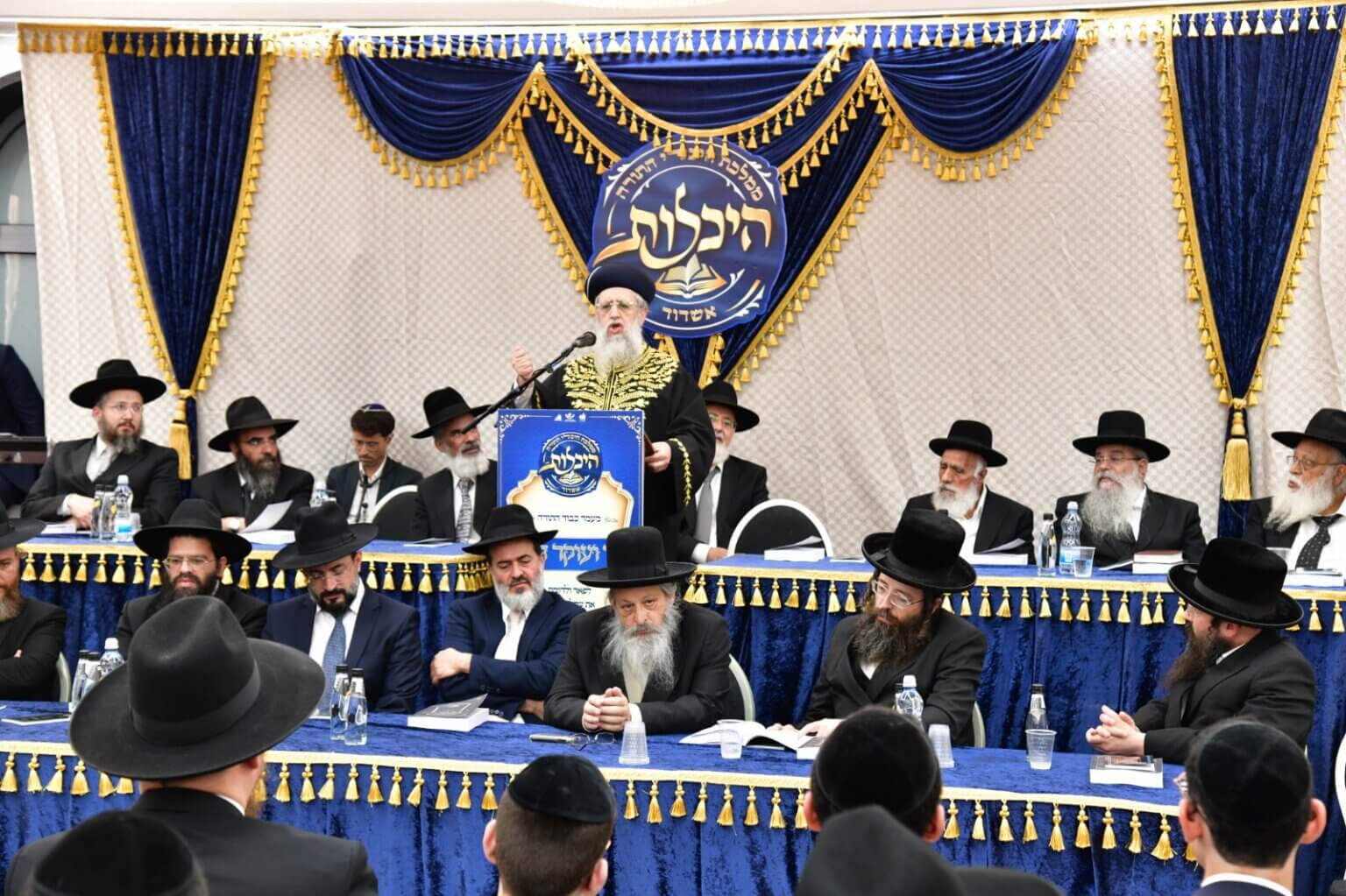 את המעמד פיארו בשלחן המזרח מרנן ורבנן גדולי ישראל שנשאו דברי תורה וחיזוק, בענייני הזמן ומעלת עמלה של תורה וכותבי חידושי התורה.
