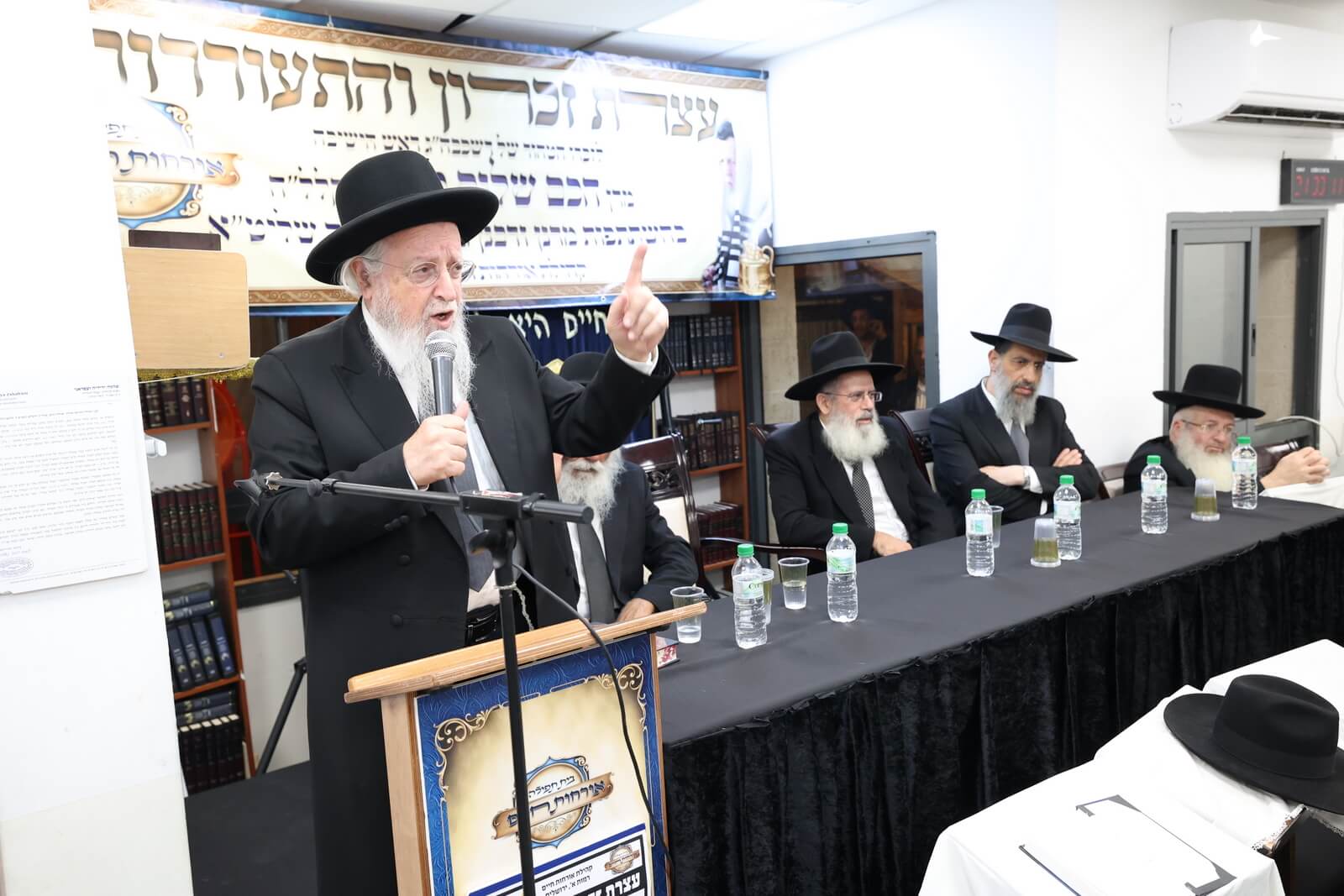 פתח את העצרת ראש הישיבה הגאון רבי דוד כהן שליט"א ראש ישיבת חברון בדברים נוקבים במשנת דרכו של מרן זצ"ל אשר מחייבת אותנו להיצמד ולילך בדרכיו ובדברים מעוררים לקראת זמן אלול הקרב. שלא תשתכח תורה מישראל לימוד תורה 'לשמה' בתורתו של מרן בדביקותו בתורה בעיון.