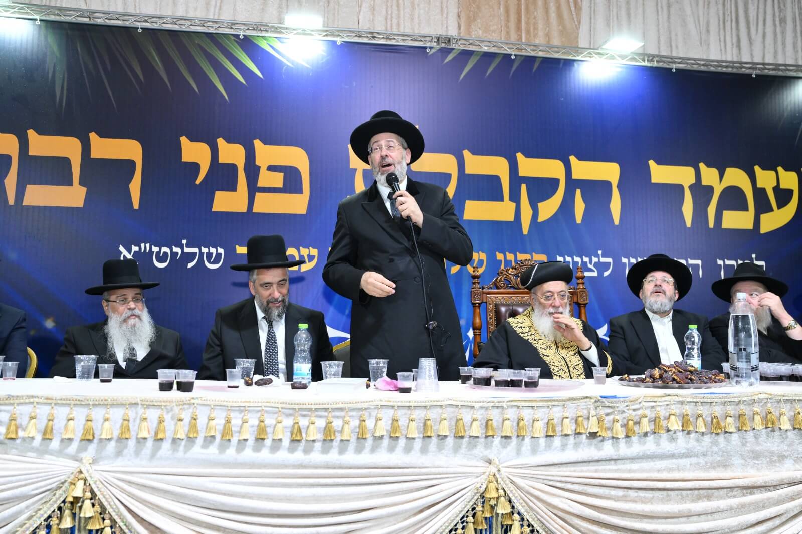 במעמד נשאו דברים גדולי התורה, את המשא המרכזי נשא הראשון לציון שהרחיב במעלת שמחת החג, בדבריו התייחס הגרש"מ עמאר לשחרור החטופים ואמר "שהדבר הזה קורה ביום הושענה רבא, זה מראה את גודל ישועת השם. אומות העולם לא מבינים מה זה היום הזה, אבל אנחנו מבינים וצריכים להתעורר ולהתחזק ביום הזה ולשוב בתשובה ולהודות להשם על חסדיו". בדבריו הוסיף מרן, "להודות זה לא רק מהשפה ולחוץ אלא הודאה להשם מתבטאת בהתחזקות פנימית בתשובה אמיתית לפני בורא עולם".