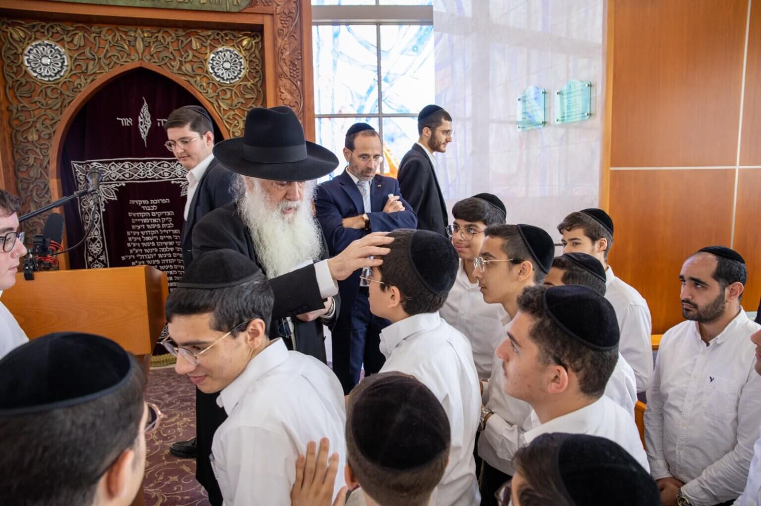 במהלך הביקור שנערך בבית המדרש המרכזי של המוסדות ברובע ג' הבנוי ברוב פאר והדר המזכיר הוד קדומים של יהדות מרוקו, בירך האדמו"ר את הלומדים על שקידתם ועמלם, ואמר כי "אשריהם שבחרו להקדיש את זמנם ללימוד התורה דווקא בימים שבהם הניסיונות מרובים".