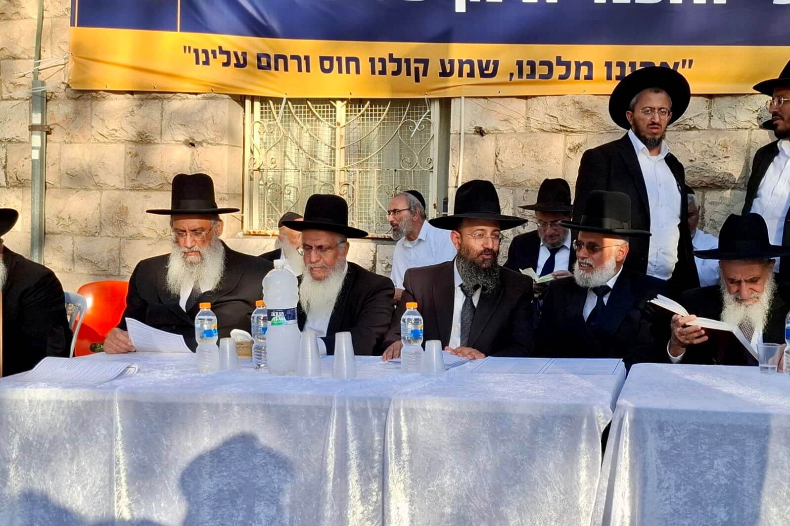 מרן הגאב"ד העביר את הכולל לבית מדרש סמוך למקום העצרת, כך שיוכל להשתתף בעצרת בלי להפסיד שעות לימוד מרן הגאב"ד בסיום התפילה לקראת היציאה לעצרת מרן הגאב"ד בדרכו לעצרת מרן רה"י הגר"י כהן שליט"א נעמד ומקבל לשלום את פני מרן הגאב"ד הגרש"י זעפראני שליט"א, במפגש מרנן חברי מועצת חברי המועצת מקבלים את פני מרן הגאב"ד מרן רה"י הגר"א סלים בכניסה למפגש חברי מועצת חכמי התורה מרן ראש הישיבה ומרן הראשון לציון במפגש בעצרת מרנן חברי מועצת חכמי התורה וגדולי התורה