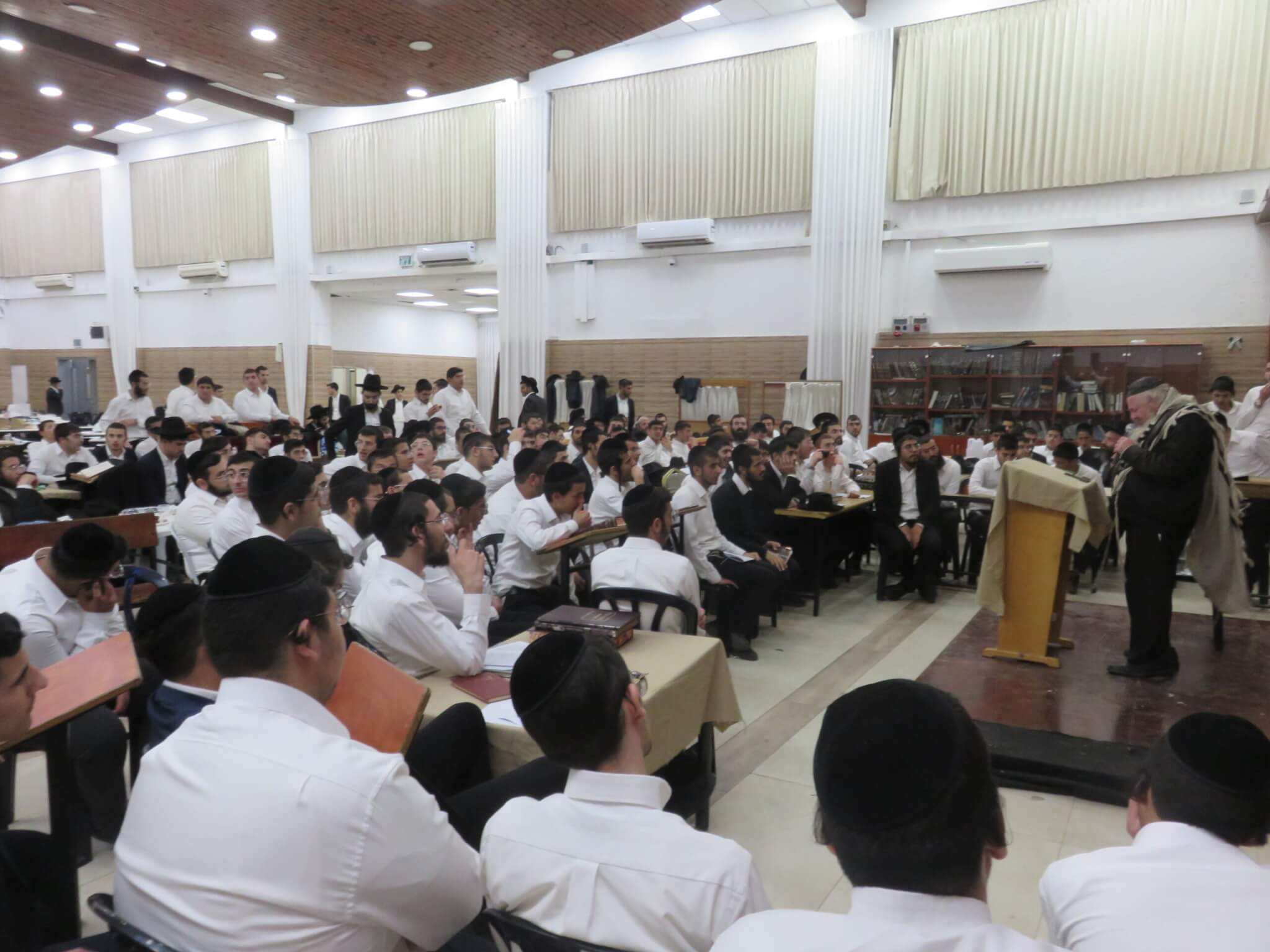 בשעת נץ החמה נערכה תפילת שחרית ברוב עם, ומיד לאחריה יצאו כ־15 אוטובוסים מלאים בבחורי הישיבה לעבר ירושלים, כשבידיהם גמרות פתוחות. את סדר א' קיימו הבחורים באולם "ויאמר יצחק" בעיר הקודש, כשבמקום נמסרו שיעורים מפי צוות הרמי"ם של הישיבה.