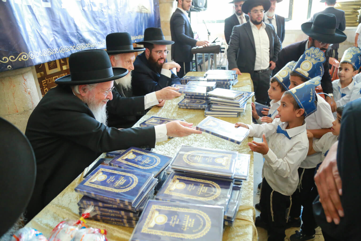 בתום הדברים עברו כל הילדים לקבל את הסידור מידי גדולי התורה, כאשר מרנן שליט"א מברכים כל ילד באופן אישי, ומעניקים שקית 'פעקלאך' לכבוד המעמד.