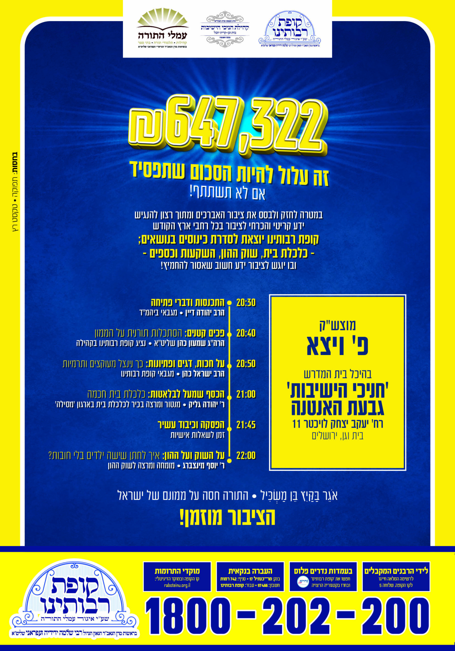 לנוכח מציאות כלכלית מורכבת ורצף פרשיות של הונאות ופיתויים פיננסיים המכוונים בעיקר לבני התורה, ומאידך – עניין גובר בתחום שוק ההון וצורך במתן מידע קריטי לבני התורה בתחום, הכריזה 'קופת רבותינו' על פתיחת מערך הסברה רחב־היקף ברחבי הארץ.