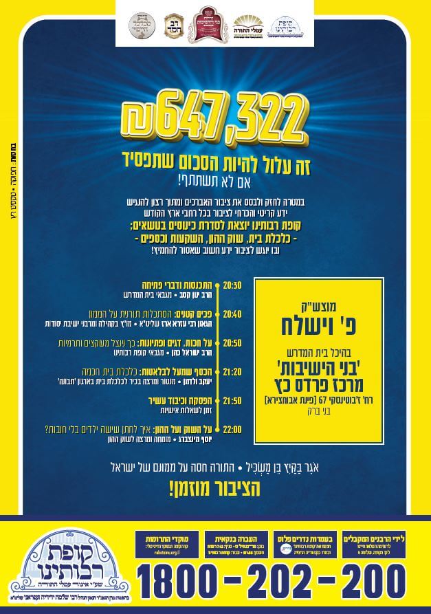 בהמשך להצלחה הגדולה במוצ"ש האחרון, בקופת רבותינו קבלו החלטה ליזום עוד כינוסים ברחבי ארה"ק, בעניין כלכלת בית ושוק ההון.