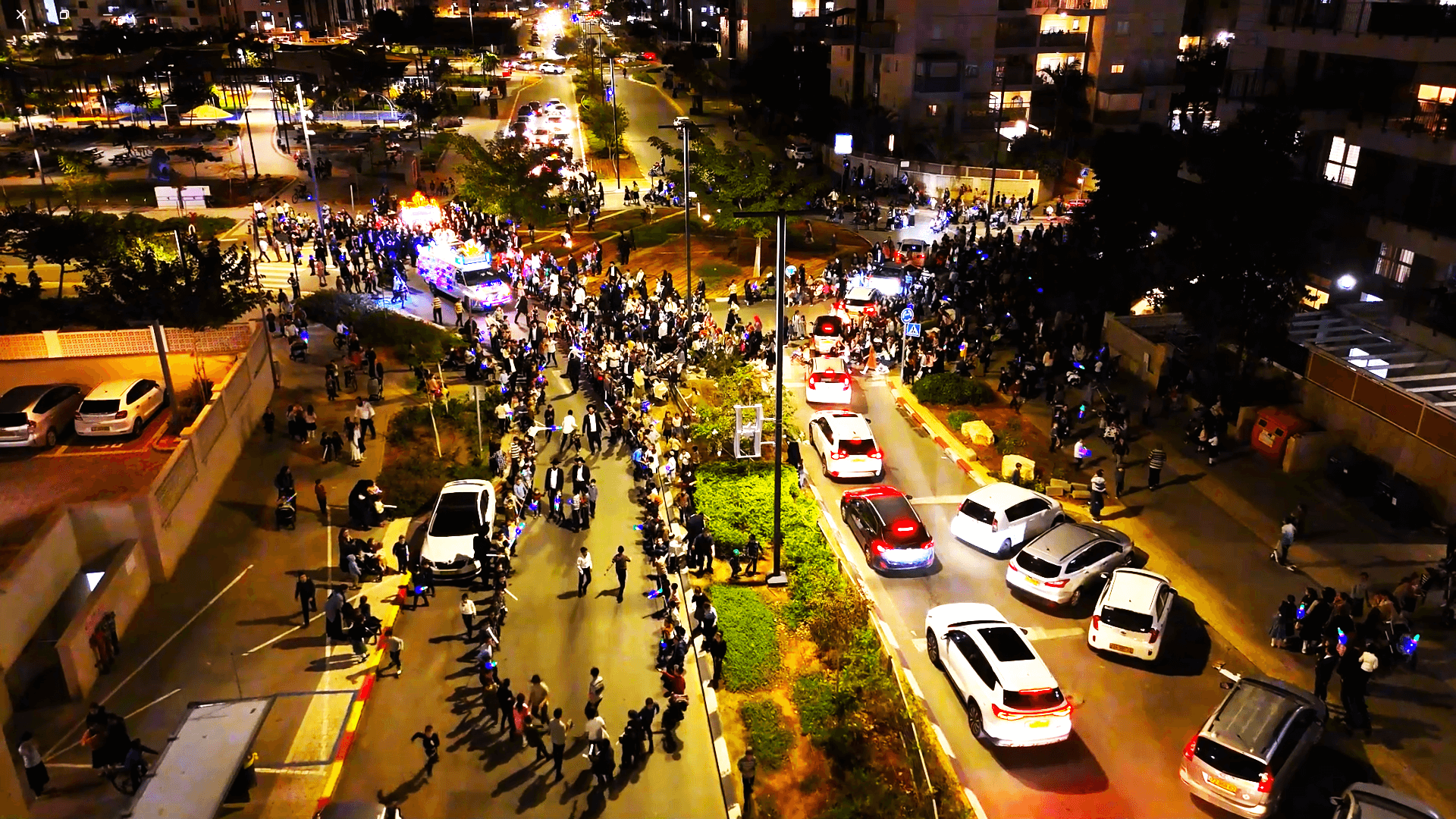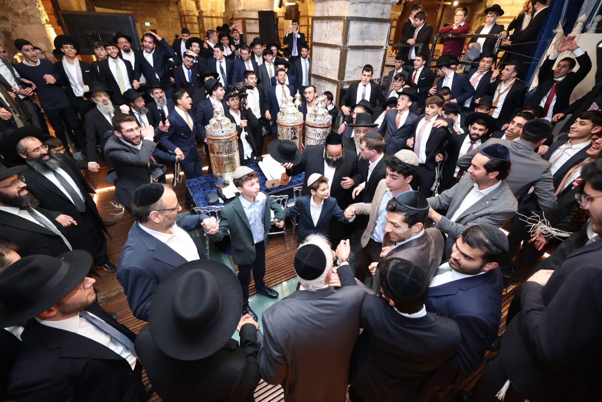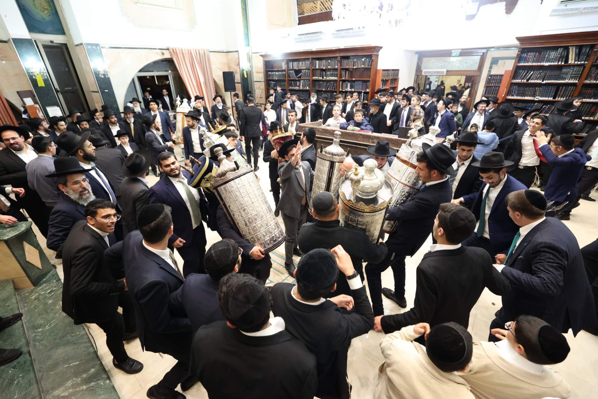 בכניסה להיכל הישיבה גאתה השמחה והתעצמה עד מאד. מקהילות השכונה ומישיבות סמוכות זרמו רבים להשתתף ברגעי הקודש, בעוד בני הישיבה מרקיעים בריקוד של שמחת תורה שאין דומה לו.