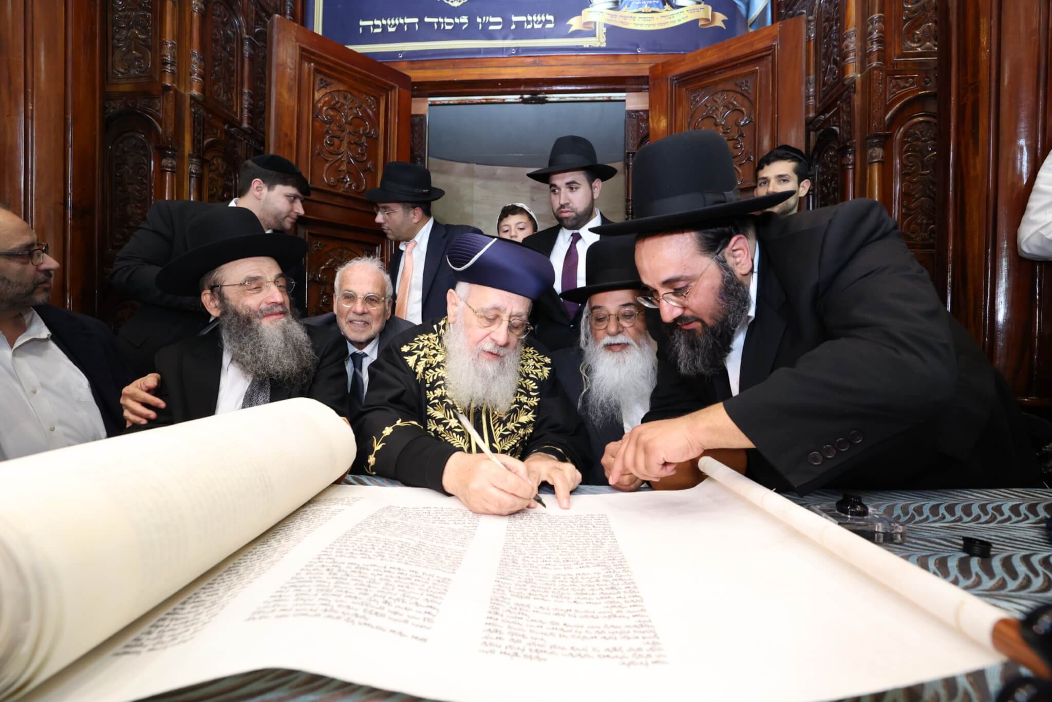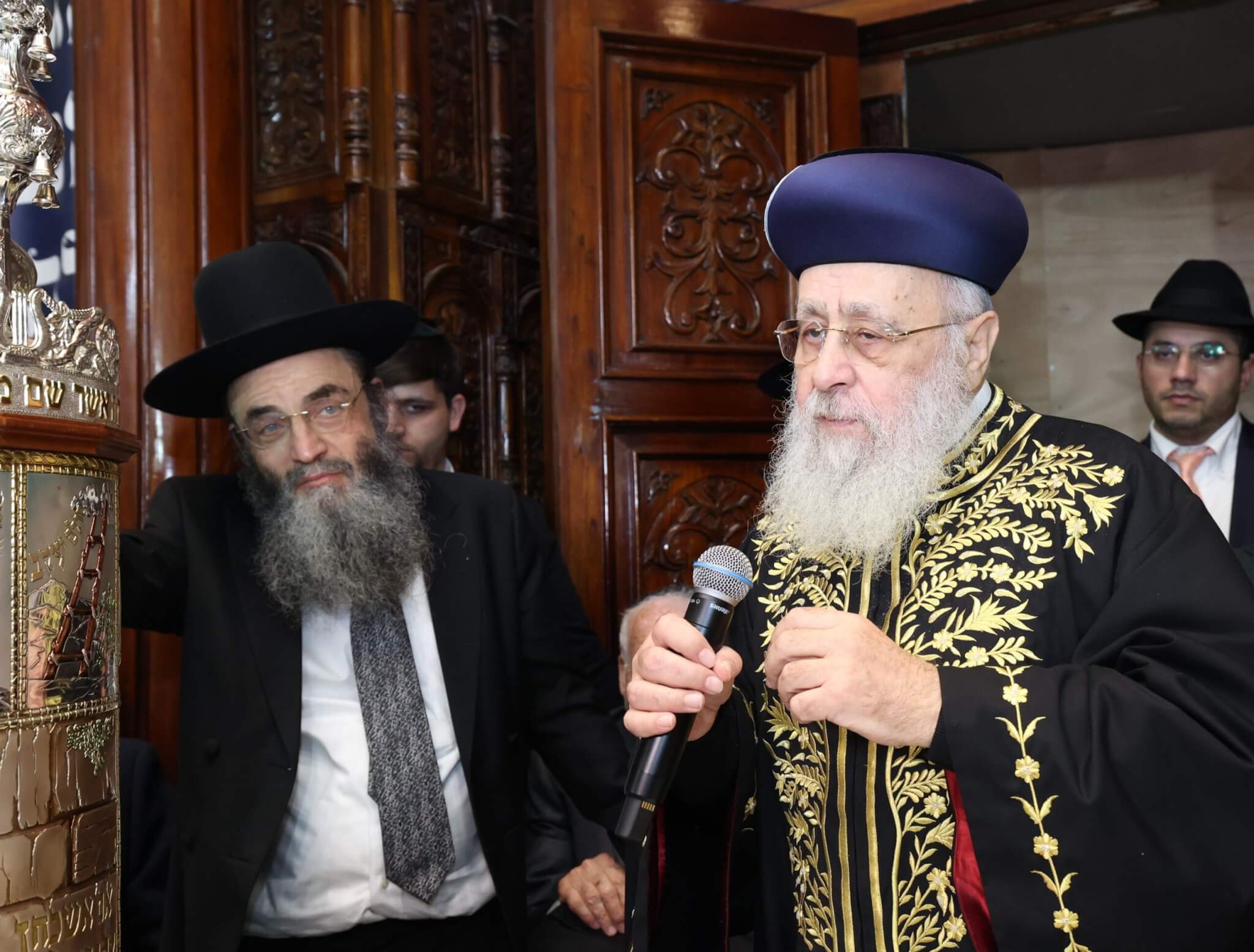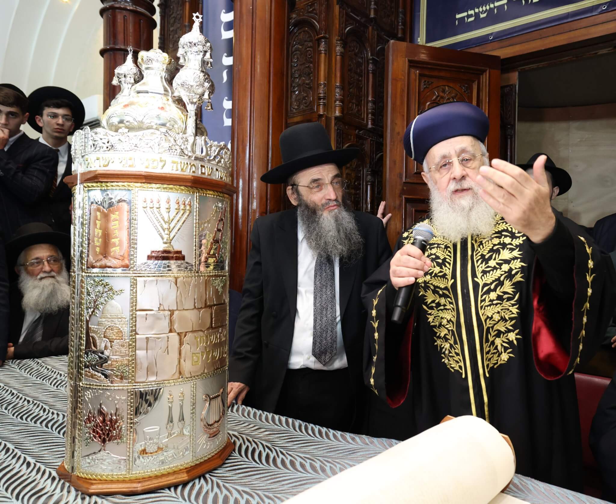 בעוד השמחה בעיצומה, נכנס למעמד מרן הראש"ל הגאון רבי יצחק יוסף שליט"א בליווי בני הישיבה. מרן שליט"א כתב אות בספר התורה ולאחר מכן נשא דברים על אחריותם של בני התורה בדור הזה, ועל עמידת עולם התורה בעקבתא דמשיחא. בדבריו הדגיש את הצורך להמשיך את מסורת מרן רבנו הגר"ע יוסף זיע"א. בסיום דבריו בירך מרן שליט"א את הישיבה וראש הישיבה שליט"א על פועלם הגדול לאורך השנים, ואף הזכיר את הקשר האישי מימי ראשית הישיבה בעת ששכנה בשכונת רמות.