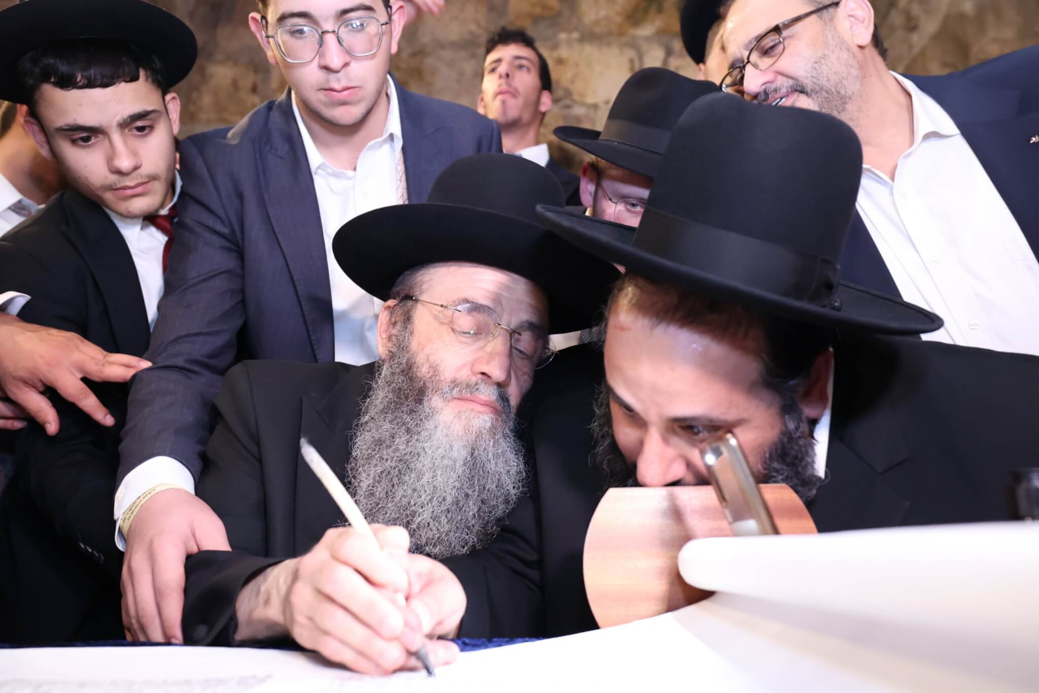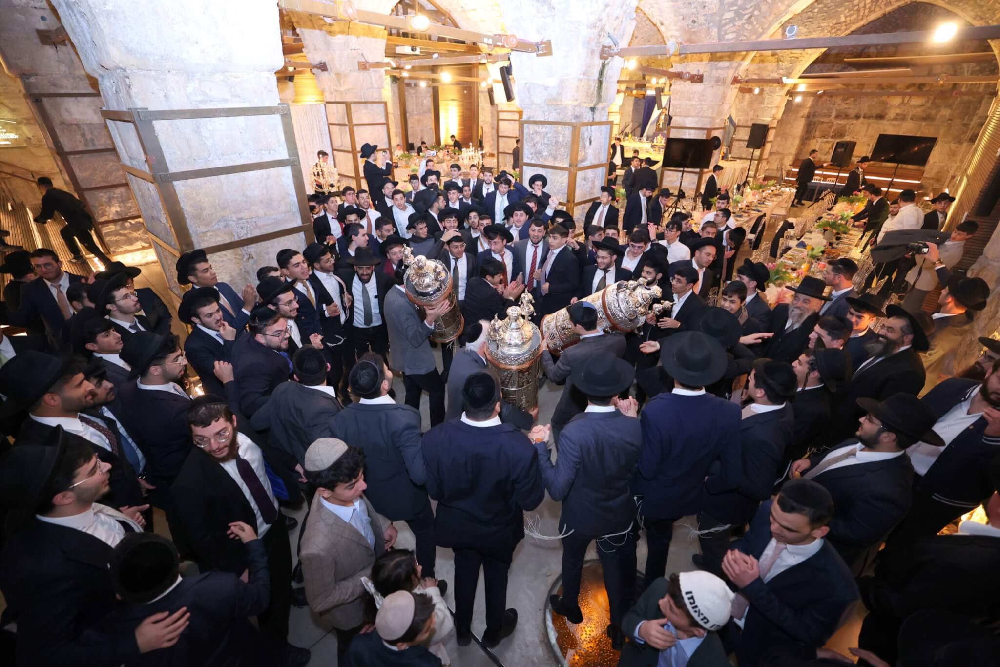 המעמד נפתח בכתיבת האותיות באולם "אחר כותלנו" שבמנהרות הכותל, בהשתתפות ראש הישיבה רבי שמואל אביגדור אריאלי שליט"א, המשגיח הגה"צ רבי אשר דניאל פרץ שליט"א, רבני הישיבה ותורמיה. לאחר כתיבת האותיות וסעודת המצווה שנערכה במקום בליווי שירה וריקודים עם הזמר ארי היל ותזמורתו, חברו בני הישיבה ובוגריה לתהלוכה אדירה שהחלה בכיכר הסמוכה לישיבה (בראש רחוב הקבלן) והגיעה עד ההיכל.