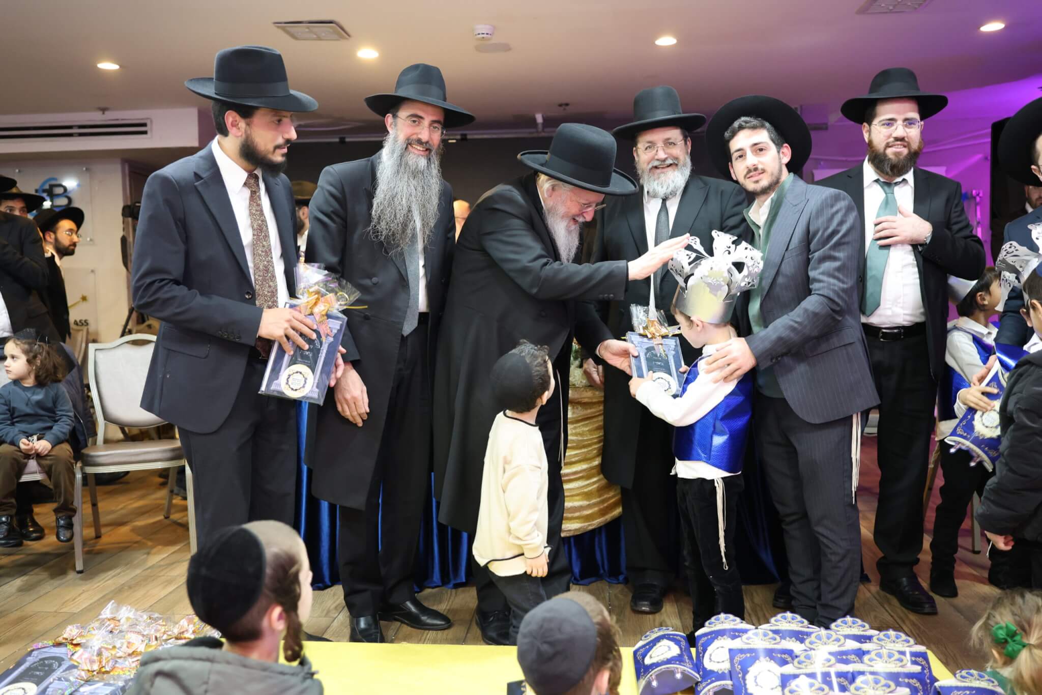 בסיום המעמד קבלו הילדים מידי מרן הגאב"ד חומש בראשית מהודר ושקית ממתקים אשר תמחיש להם את מתיקות התורה ואהבתה.