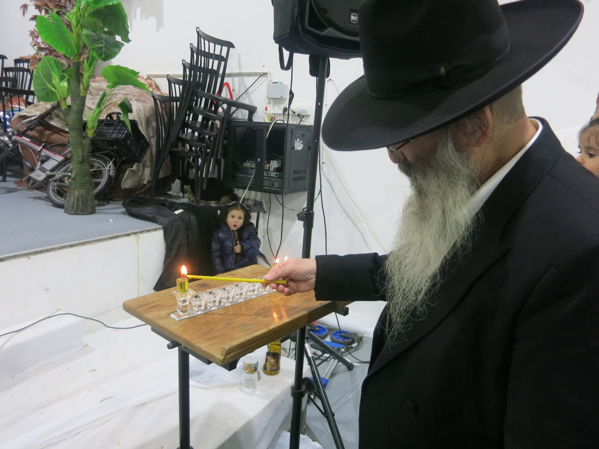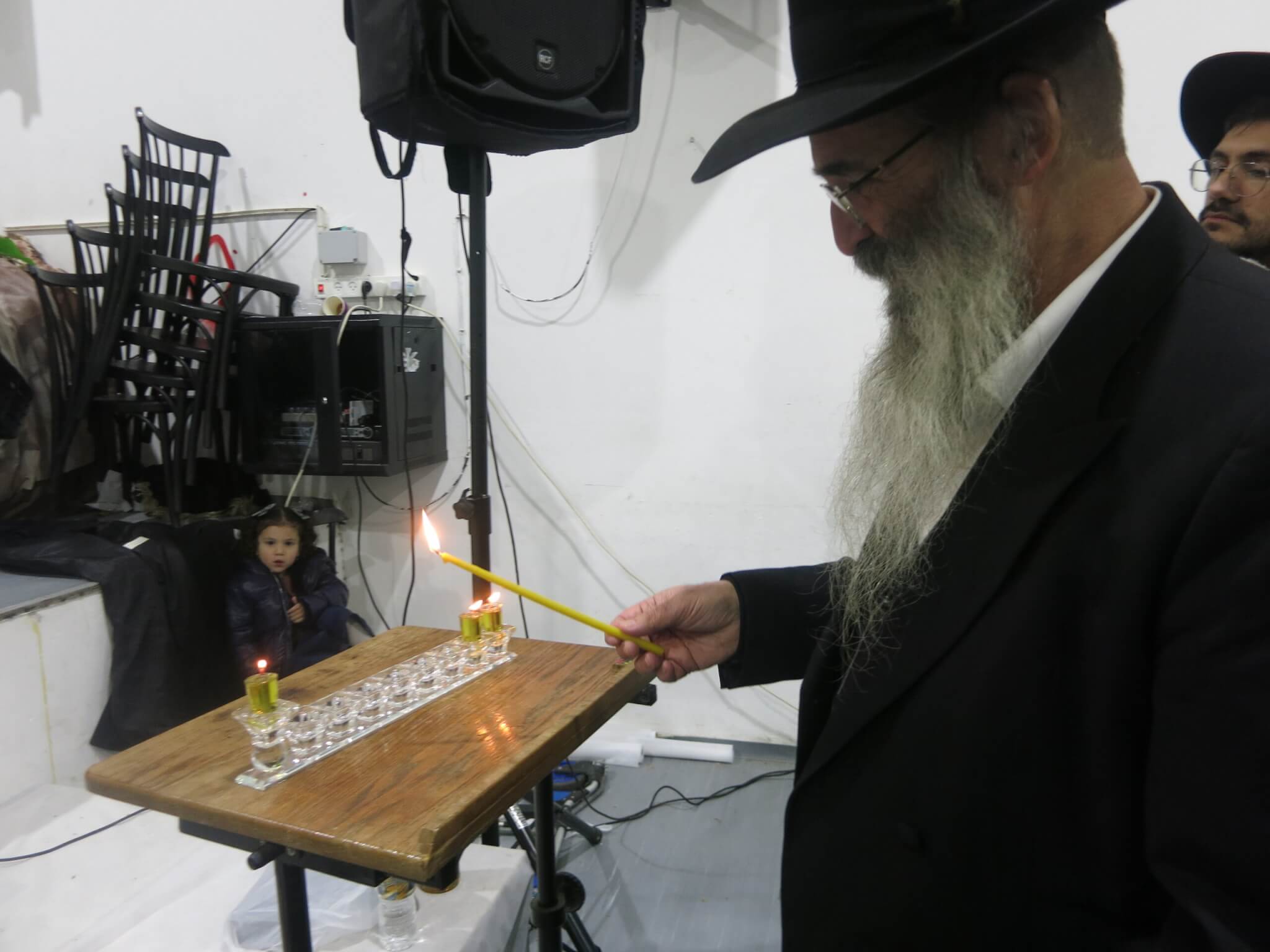 בהמשך ניגש מורנו הרב שליט"א להדלקת נר חנוכה, והציבור הקדוש פרץ בשירה ובשמחה, להודות ולהלל על הניסים שעושה עמנו בימים ההם בזמן הזה, בליווי בעל המנגן ר' ישי כהן.