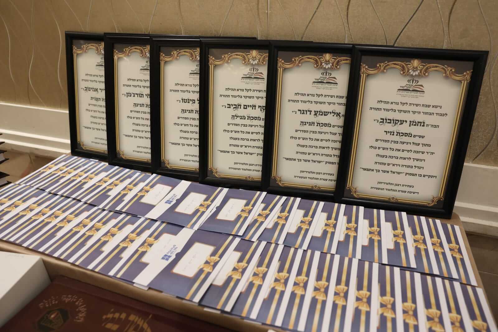 בסיום דבריו העניק חכם ניסים, ש"ס מהודר לבחור שלקח על עצמו לימוד של 1550 גפי גמרא והתחייב לסיים עד ימי השובבי"ם של שנת תשפ"ו. וכן הוענקו פרסים יקרי ערך לתלמידי הישיבה אשר קנו אשתקד בדפי גמרא את העליות בימי השובבי"ם.
