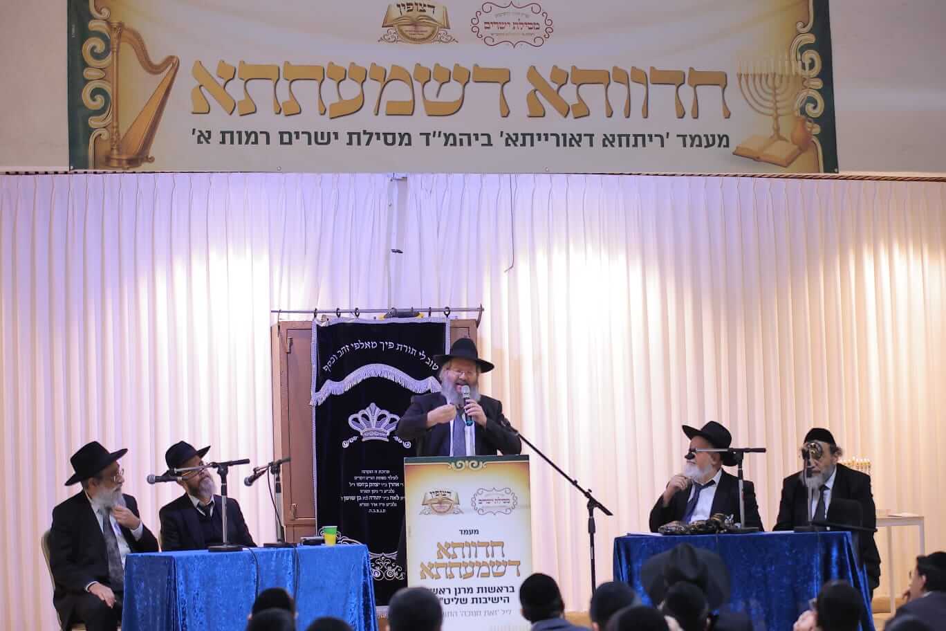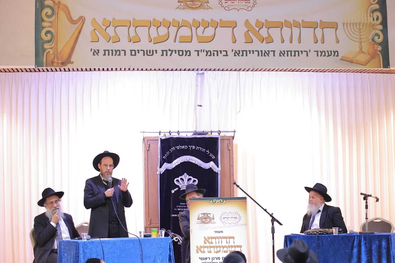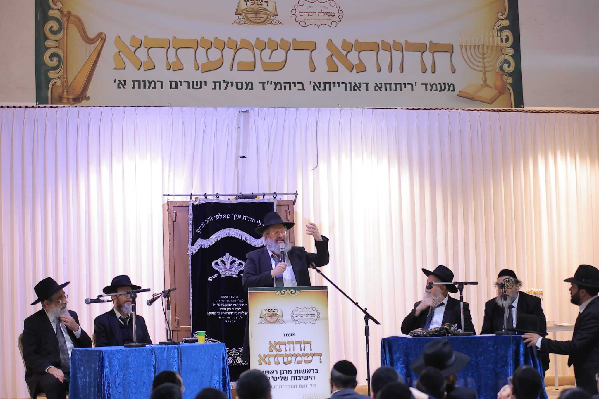 במעמד שהינו הראשון שנערך בקהילות האברכים בציבורנו בפורמט זה, התכנסו יחדיו גדולי הלמדנים מרנן הגאונים האדירים רבי מנשה אביעזרי תופיק שליט"א ראש ישיבת באר יצחק, רבי ישי טולידנו שליט"א מראשי ישיבת דעת חיים וראש ישיבת צעירים ירושלים, רבי יעקב שרבאני שליט"א מראשי ישיבת מאור התורה ורבי שמעון שרייבר שליט"א מראשי ישיבת יסודות, ויחד שטחו נידונים מרתקים בפני הציבור והתדיינו עם הציבור וביניהם בעומקא דשמעתתא.