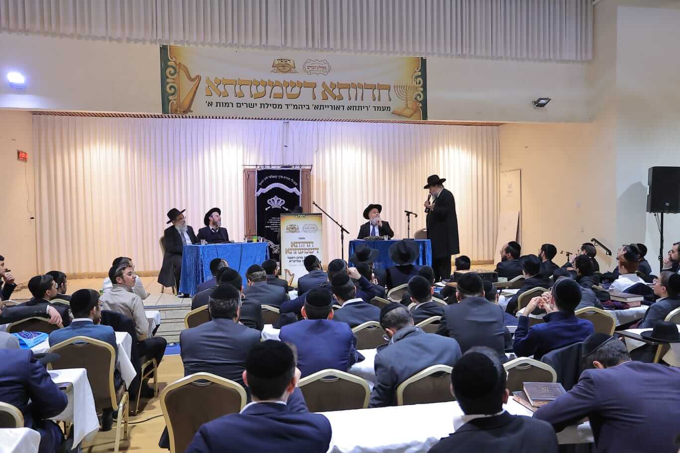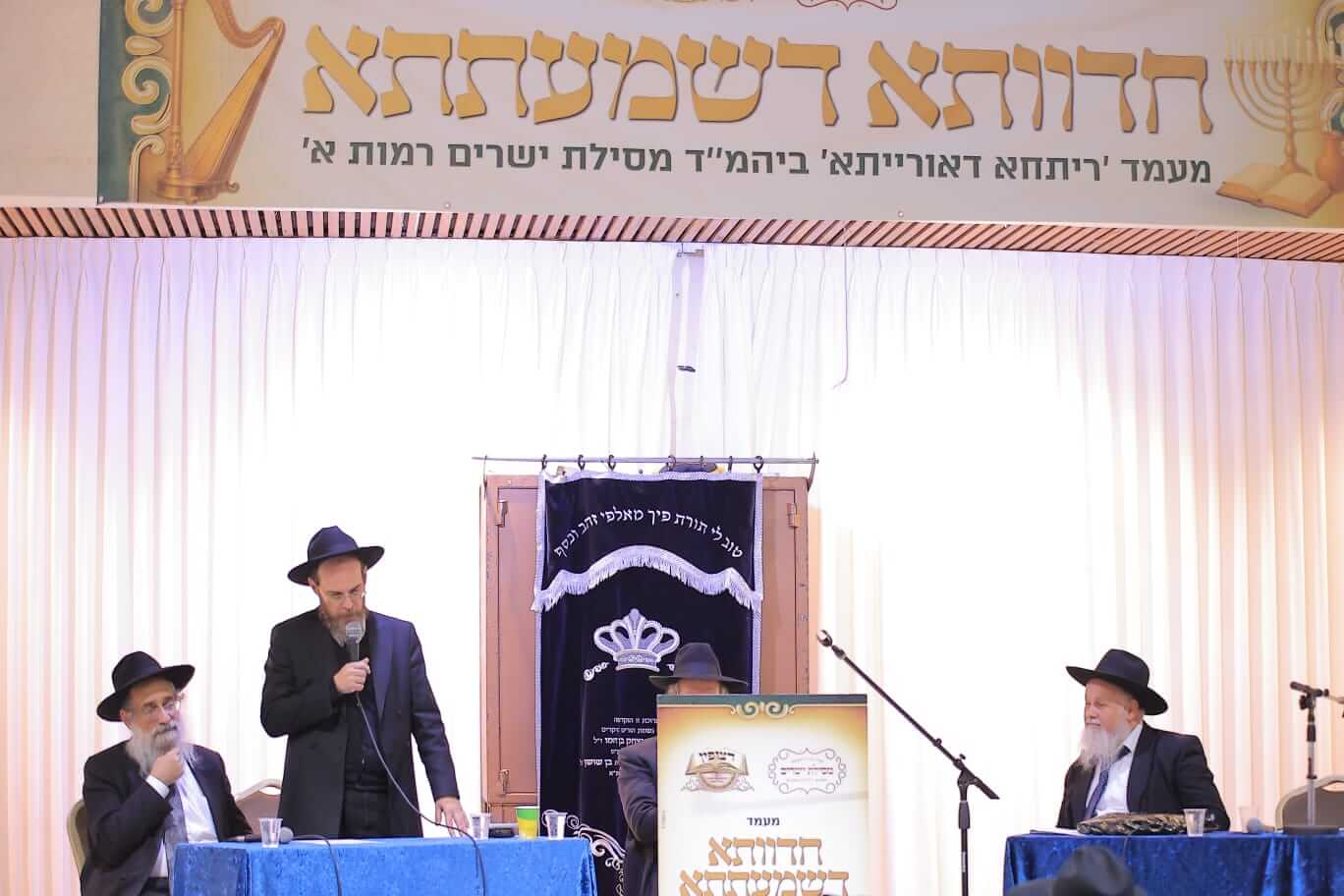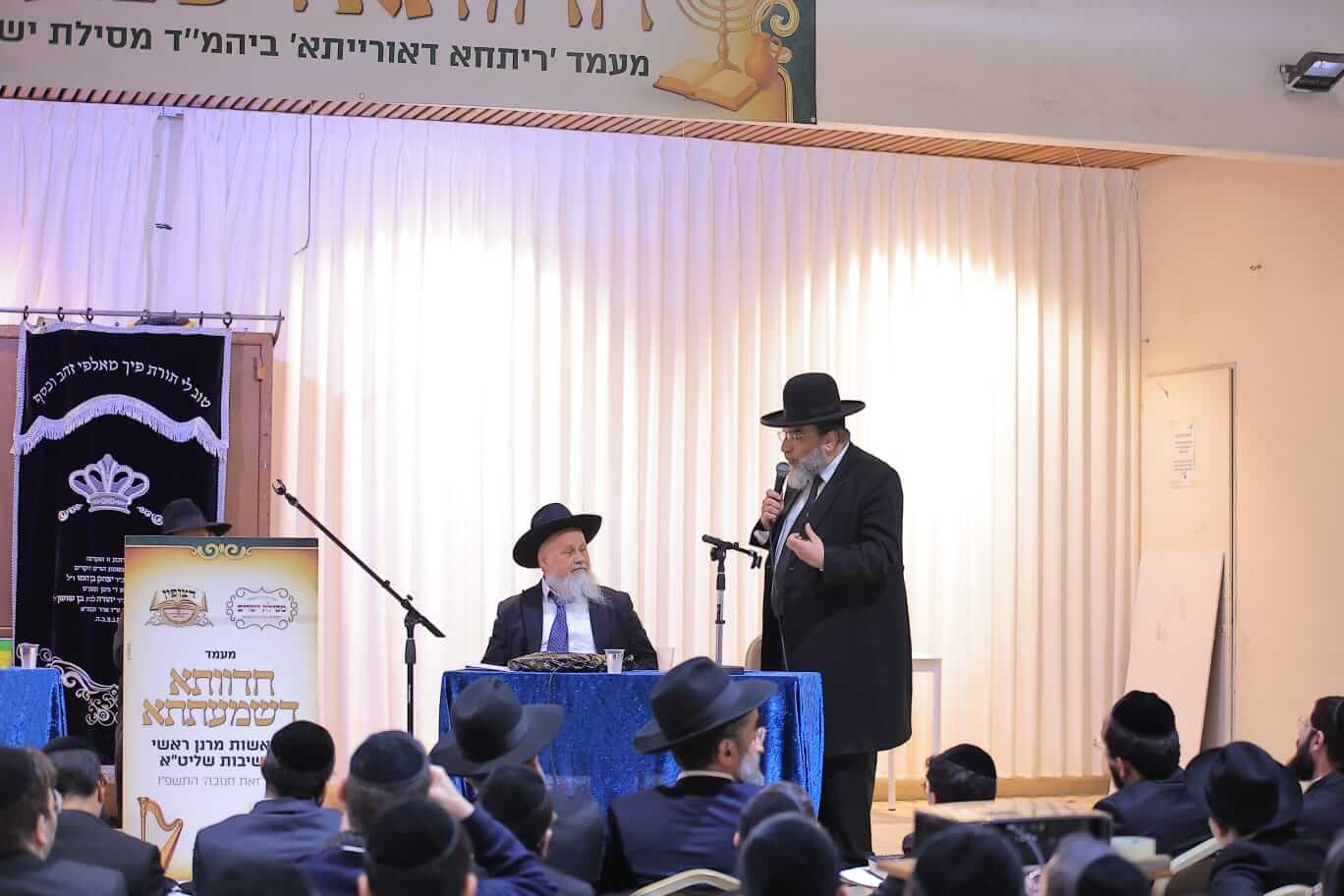 במעמד שהינו הראשון שנערך בקהילות האברכים בציבורנו בפורמט זה, התכנסו יחדיו גדולי הלמדנים מרנן הגאונים האדירים רבי מנשה אביעזרי תופיק שליט"א ראש ישיבת באר יצחק, רבי ישי טולידנו שליט"א מראשי ישיבת דעת חיים וראש ישיבת צעירים ירושלים, רבי יעקב שרבאני שליט"א מראשי ישיבת מאור התורה ורבי שמעון שרייבר שליט"א מראשי ישיבת יסודות, ויחד שטחו נידונים מרתקים בפני הציבור והתדיינו עם הציבור וביניהם בעומקא דשמעתתא.