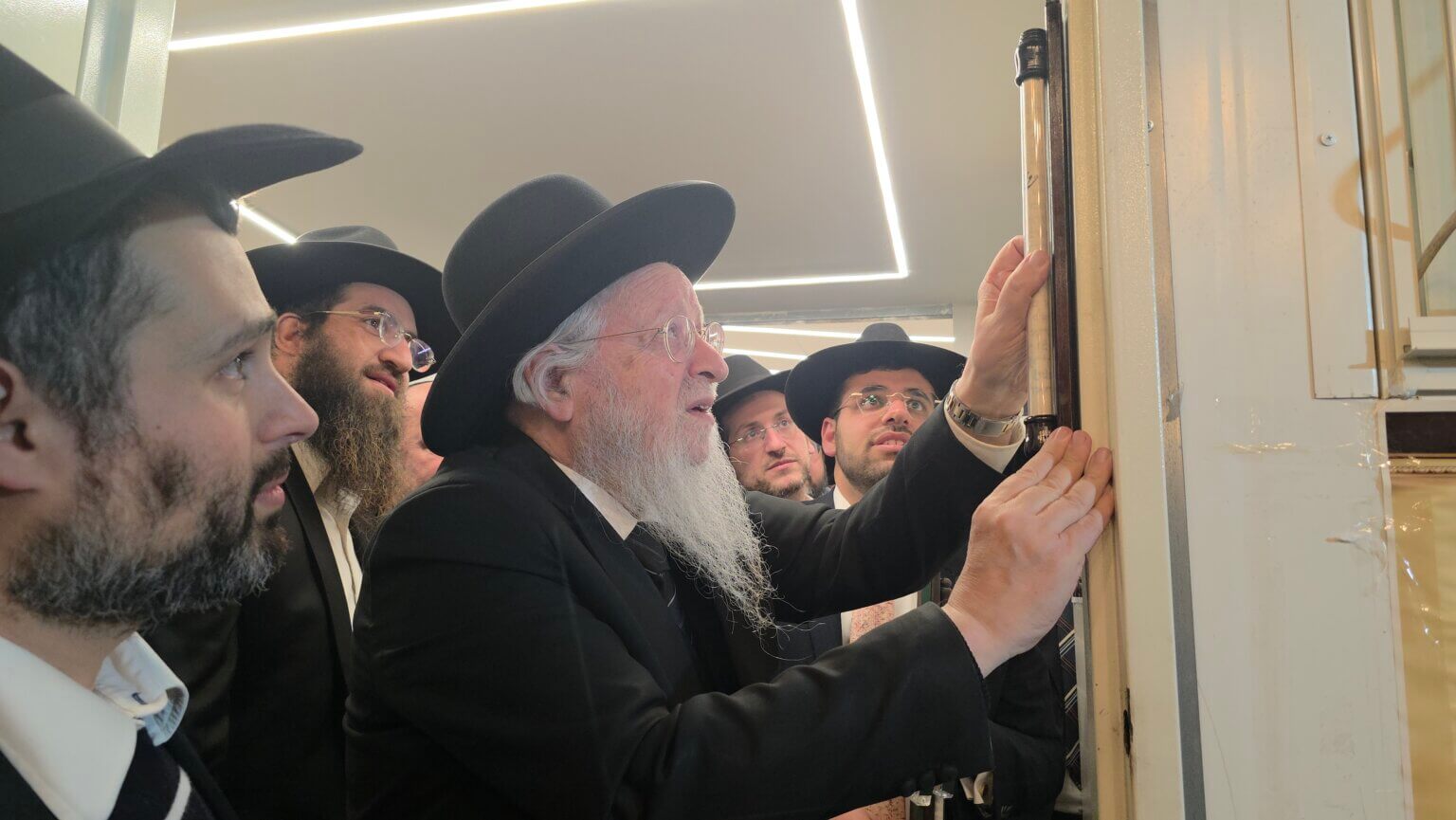 בשיאו של המעמד זכתה הקהילה לקביעת מזוזות על פתחי בית המדרש על ידי מרן הגאב"ד הגאון הגדול רבי שלמה ידידיה זעפראני שליט"א, גאב"ד עמלי תורה ונשיא קהילות האברכים, אשר טרח והגיע לכבד את המעמד ולחזק את ידי האברכים בעמידתם על משמר התורה והקדושה.