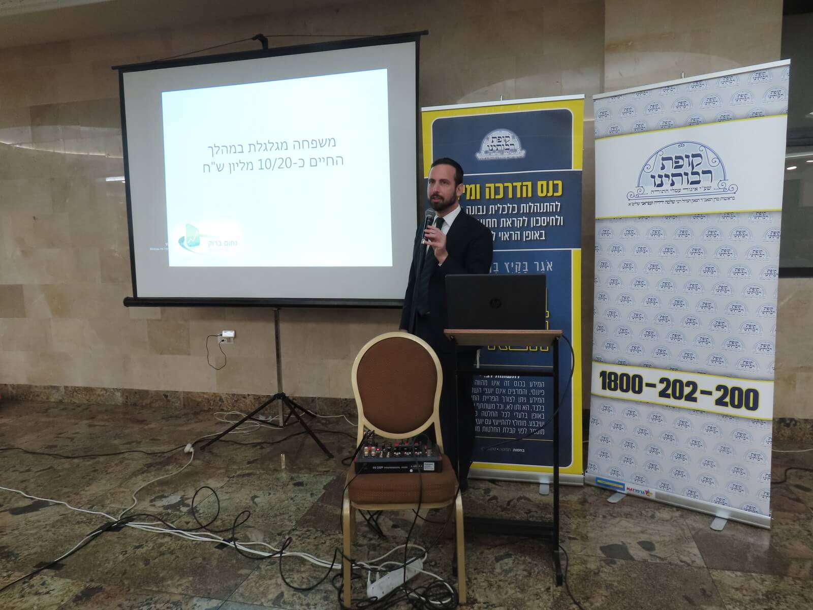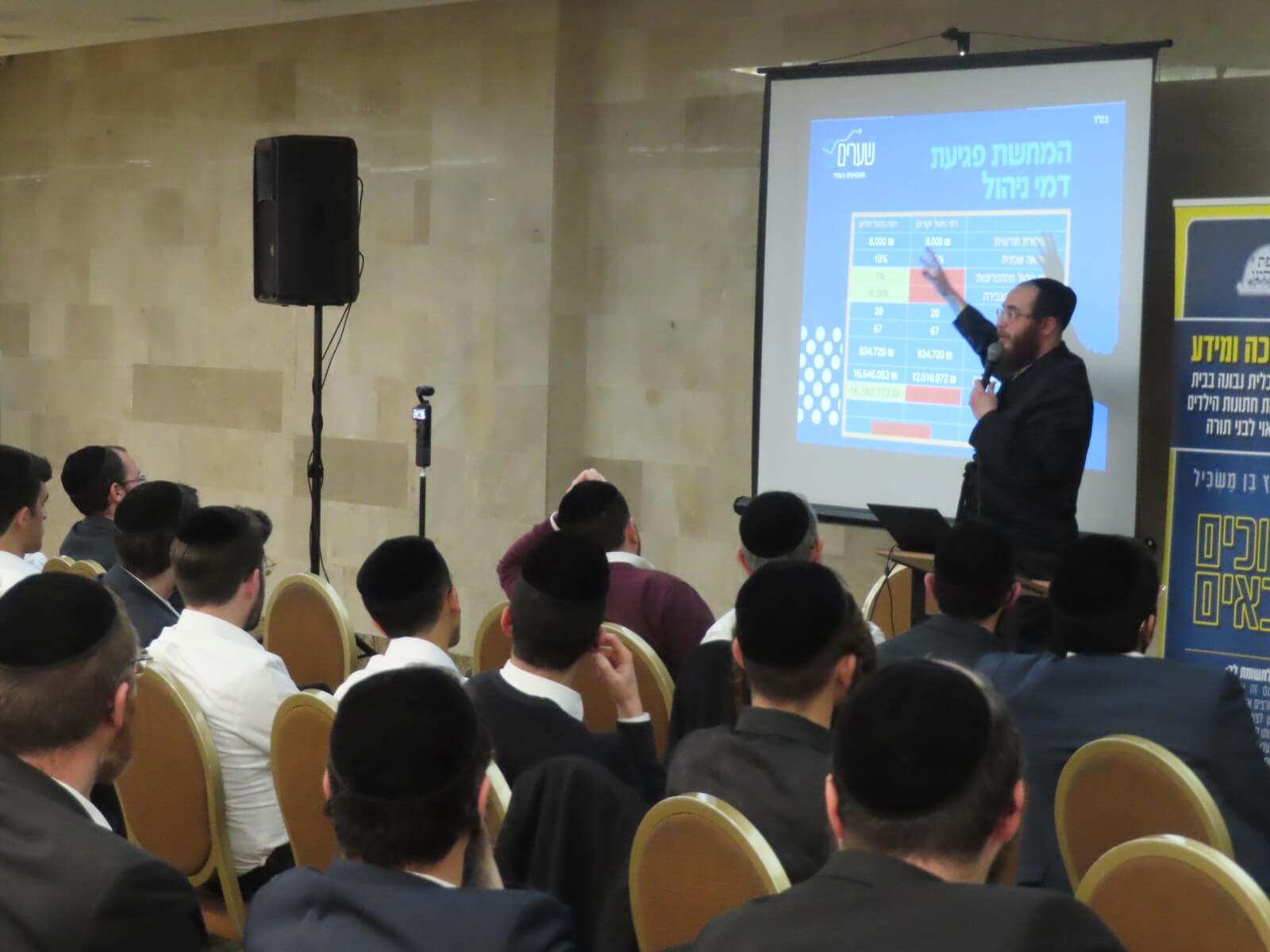 לסיום נמסרה הרצאה נוספת ע"י הרה"ג אברהם לבקוביץ', יו"ר ארגון שערים ורב ארגון 'תשואה כהלכה' אשר סקר את הכלים והאפשרויות השונות הקיימות בשוק ההון, המקומות בהם כל אדם פוגש אותו והדרך להרוויח באופן מותאם לאברכים ובלי שזה ידרוש השקעת משאבי זמן ומחשבה מיותרים.