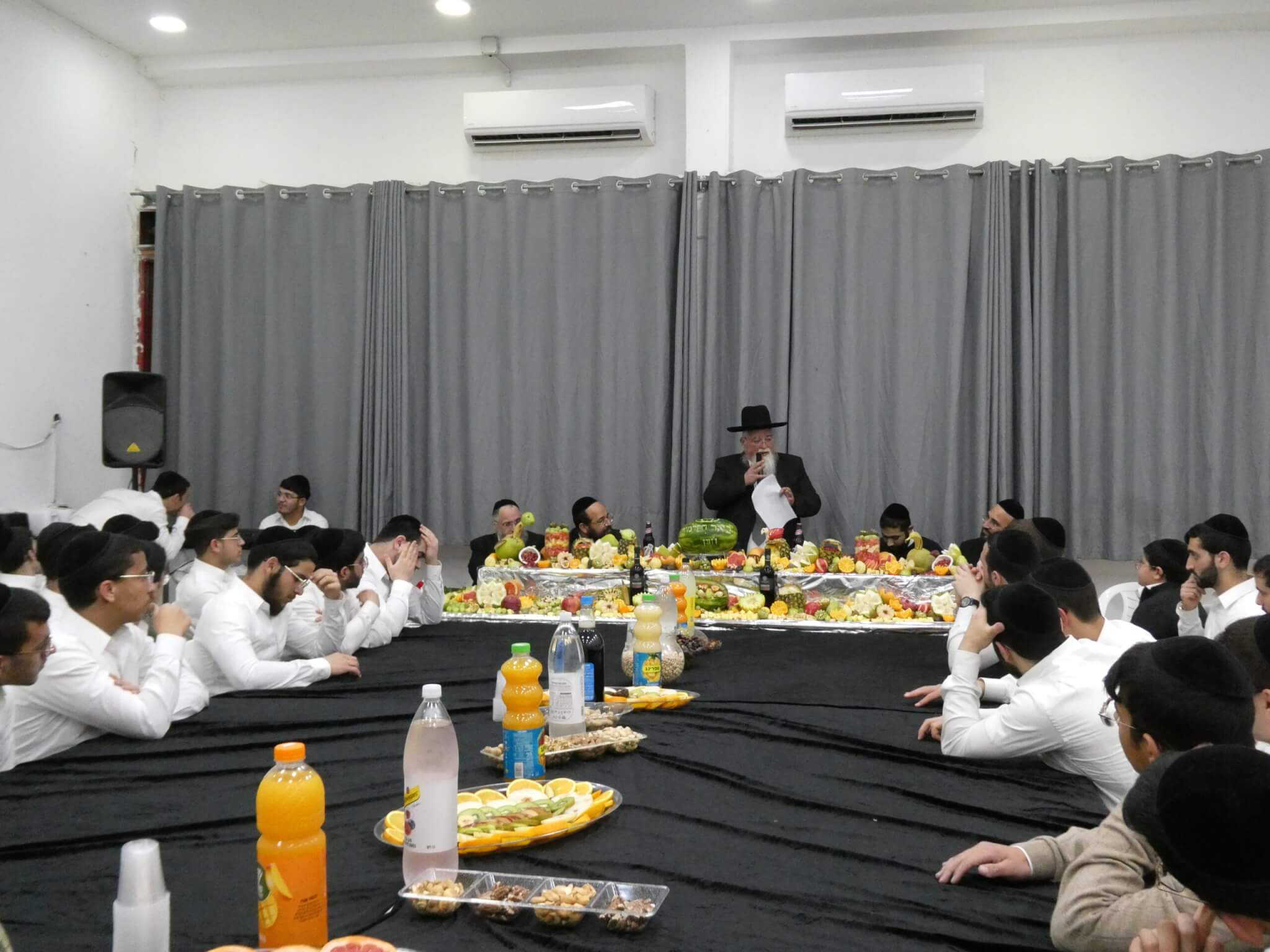 עם סיום לימוד סדר ג' בבית המדרש, ניגשו הבחורים לחדר האוכל, שם הוכנו עבורם שולחנות ערוכים במבחר פירות שנשתבחה בהם ארץ ישראל. במהלך הסדר נערך חידון הלכתי בהלכות ברכות על ידי הגאון רבי ליאור אנקונינה שליט"א, מראשי הישיבה, כאשר הבחורים שהתבקשו להשיב נדרשו לבסס את תשובותיהם בסברות ובמקורות.