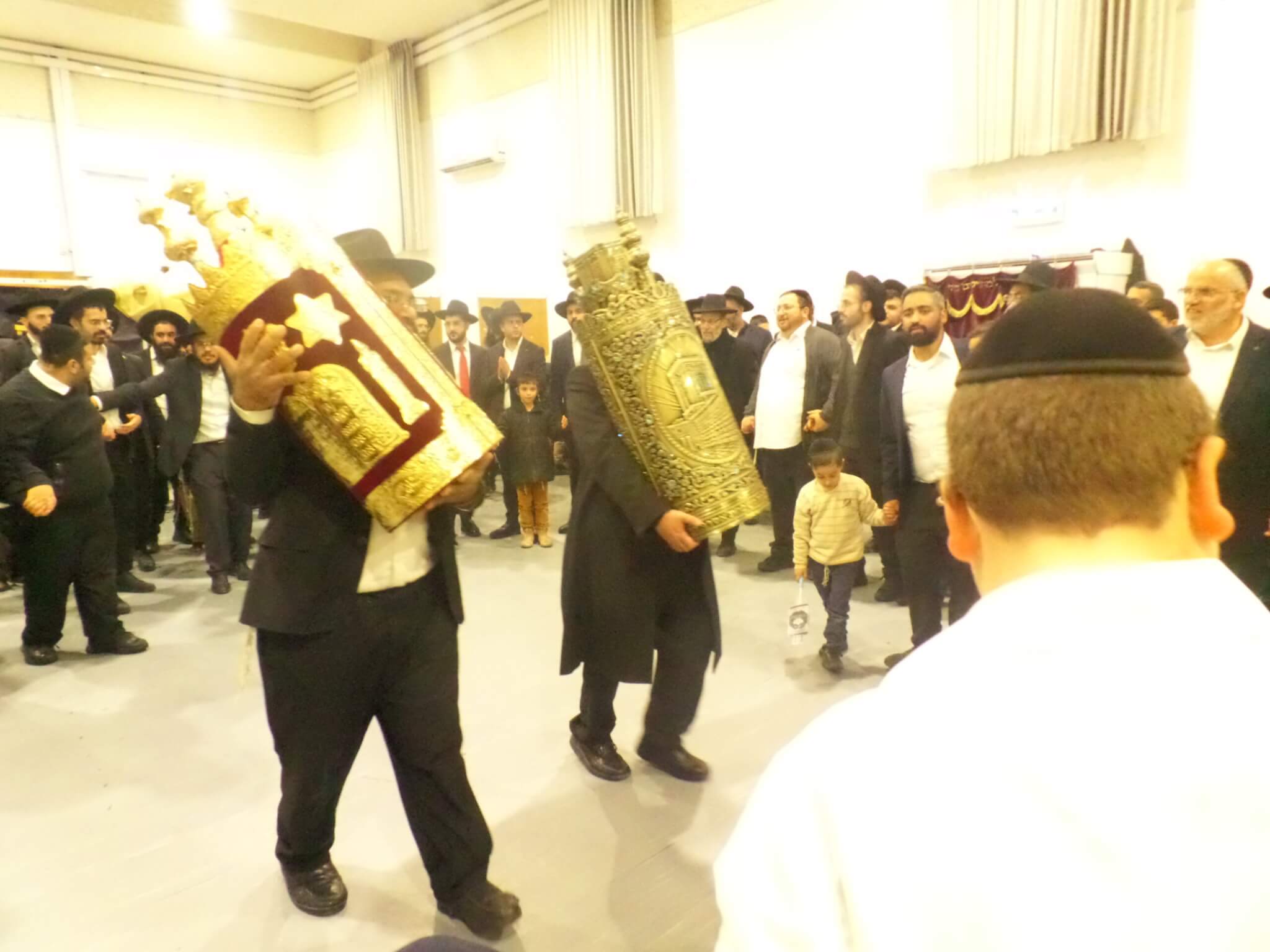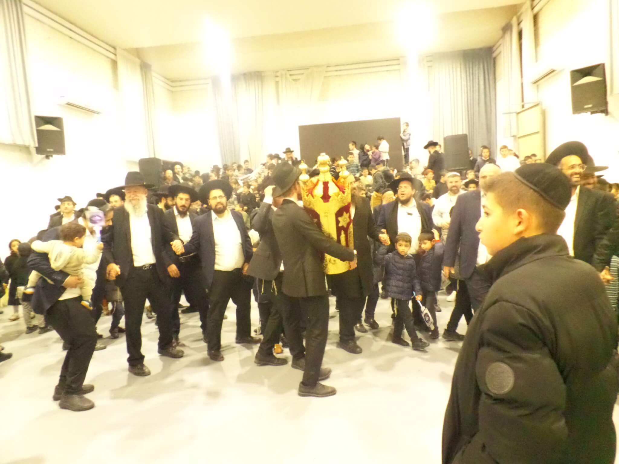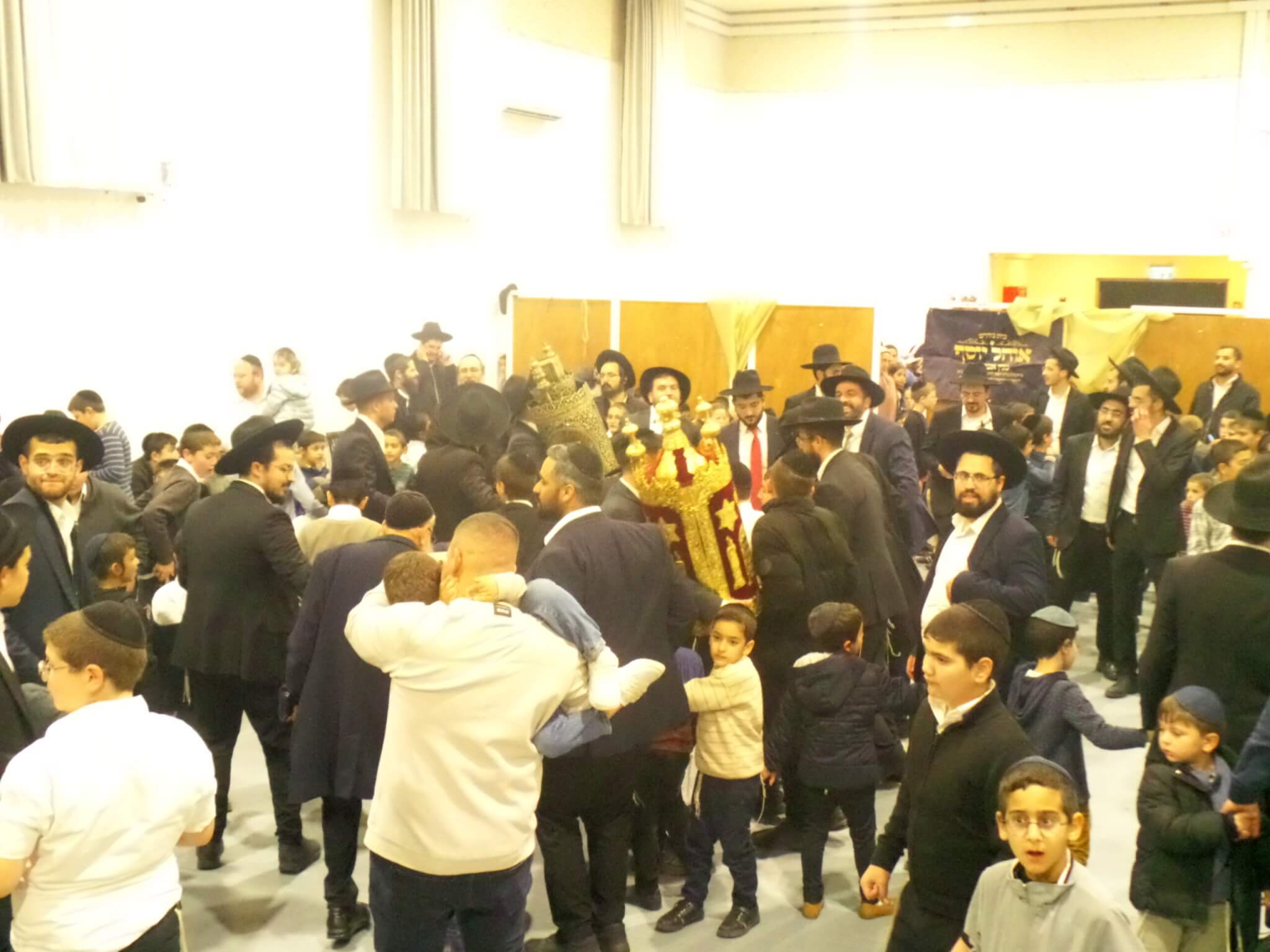 מעמד הכנסת ספר התורה התקיים ברוב פאר והדר. מאות ילדים נטלו חלק בתהלוכה כשהם מחזיקים לפידים, שרים ורוקדים לכבודה של תורה. עם סיום התהלוכה חולקו לילדים שקיות ממתקים, והאווירה כולה הייתה של שמחה והתרוממות.
