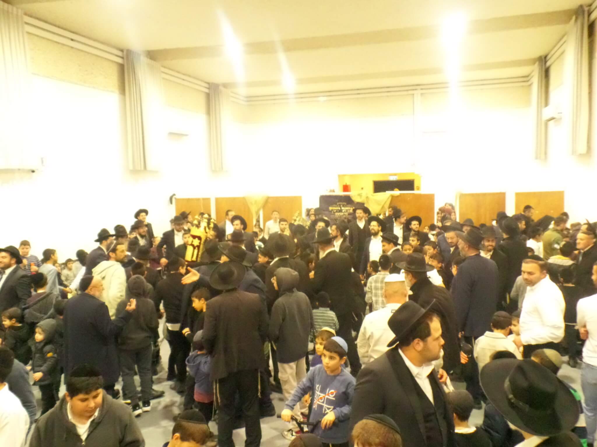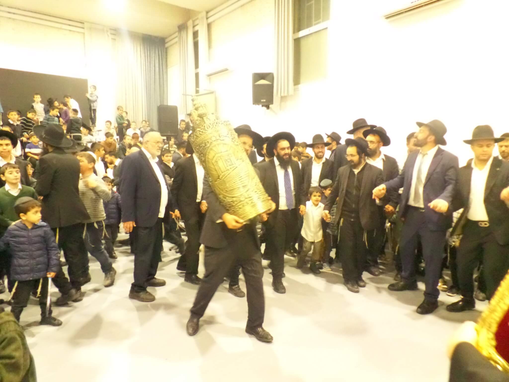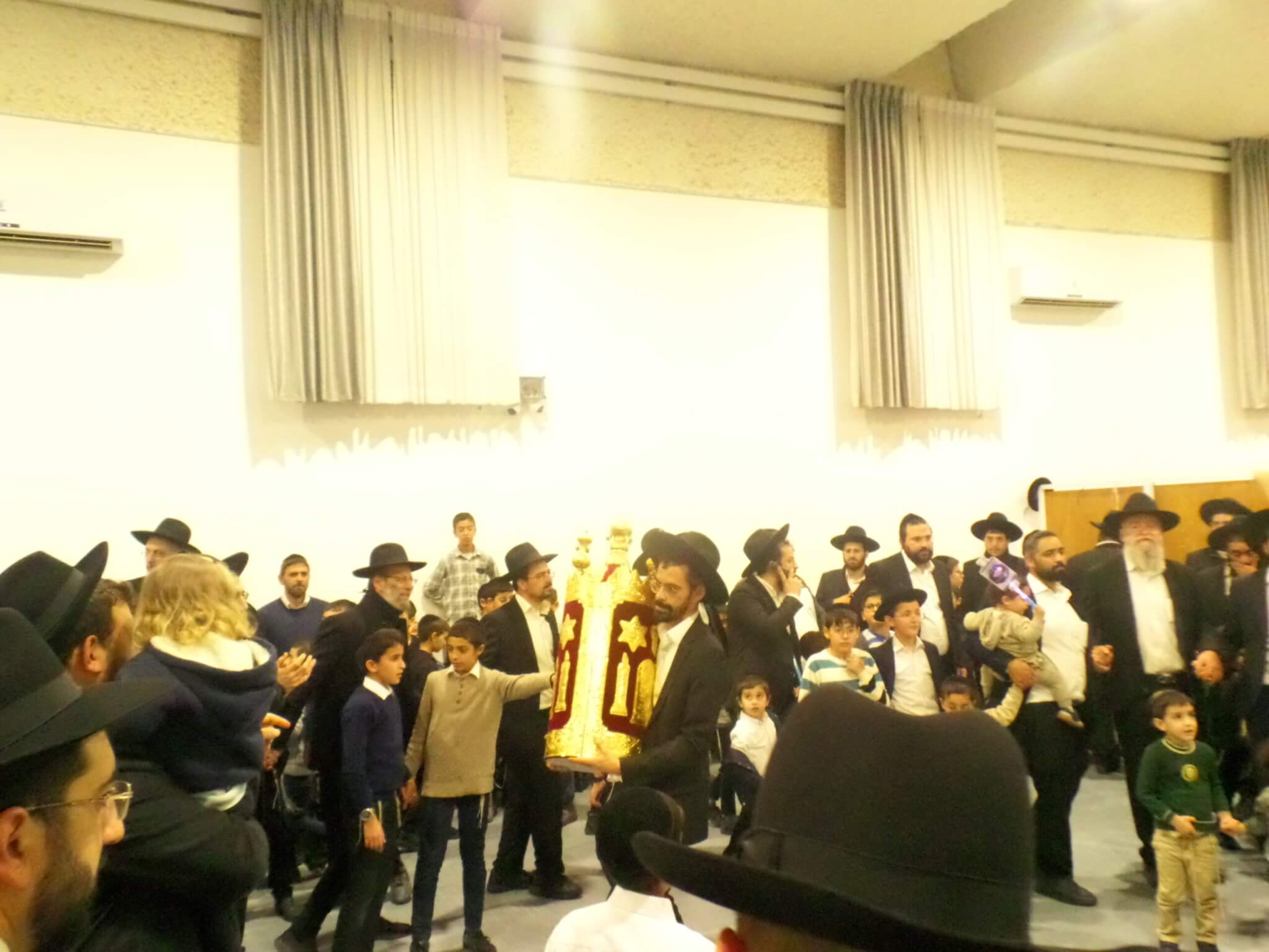 מעמד הכנסת ספר התורה התקיים ברוב פאר והדר. מאות ילדים נטלו חלק בתהלוכה כשהם מחזיקים לפידים, שרים ורוקדים לכבודה של תורה. עם סיום התהלוכה חולקו לילדים שקיות ממתקים, והאווירה כולה הייתה של שמחה והתרוממות.