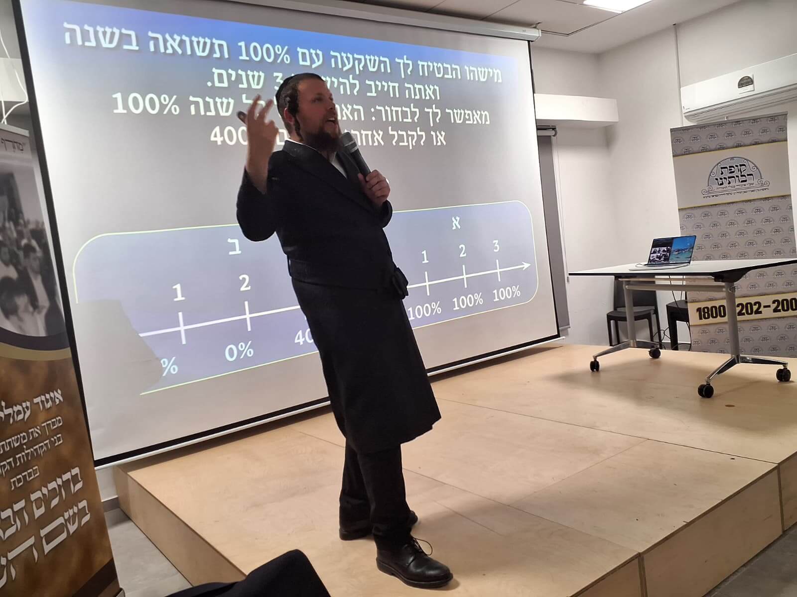 הרצאה מרתקת נמסרה על ידי יעקב ולדמן – מומחה לכלכלת בית ומחבר רב המכר 'כלכלית מדוברת' וחבר הפורום החרדי להגנת הצרכן, אשר דיבר על הזהירות הנדרשת מתרמיות והשקעות שגויות, ובהמשך נתן סדרת עצות מחכימה ומרתקת על הדרכים הנכונות לנהל בתבונה את כלכלת הבית, אופן קבלת ההחלטות הפסיכולוגי שלנו, התנהלות נכונה עם כרטיסי אשראי ובנקים, תכנון הוצאות וחובות מושכל ועוד.