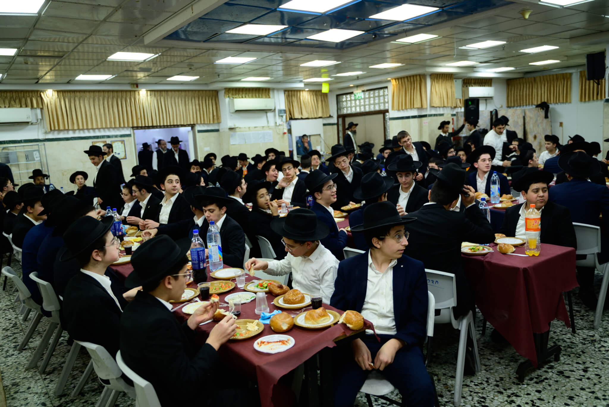 בישיבה הגדולה נערך במקביל מבחן פומבי מקיף בהלכות שבת, בדיני אמירה לנכרי, בפני רבני הישיבה. המעמד הסתיים בדברי חיזוק, שבח לעמל הלימוד, וריקודים לכבודה של תורה.