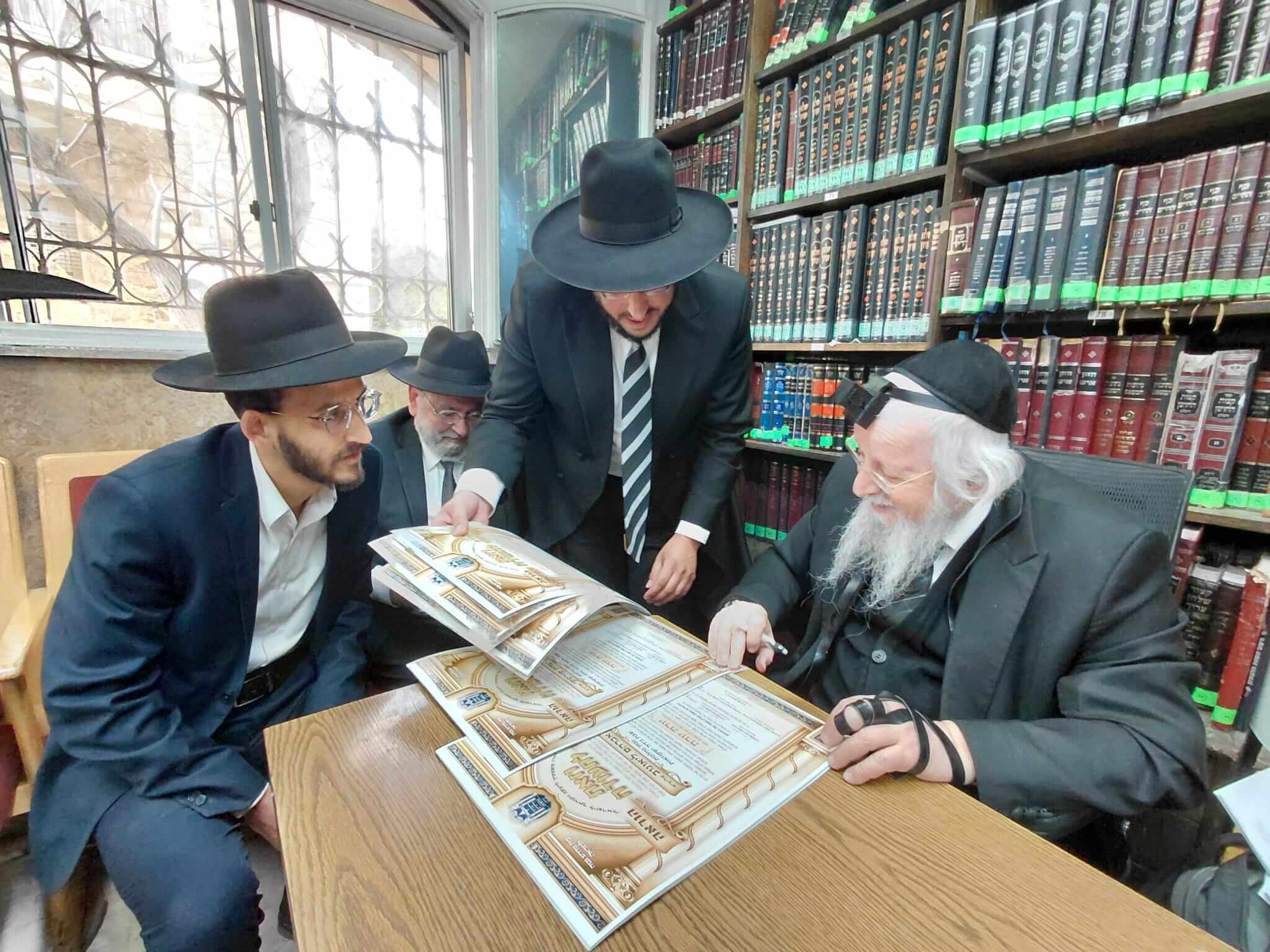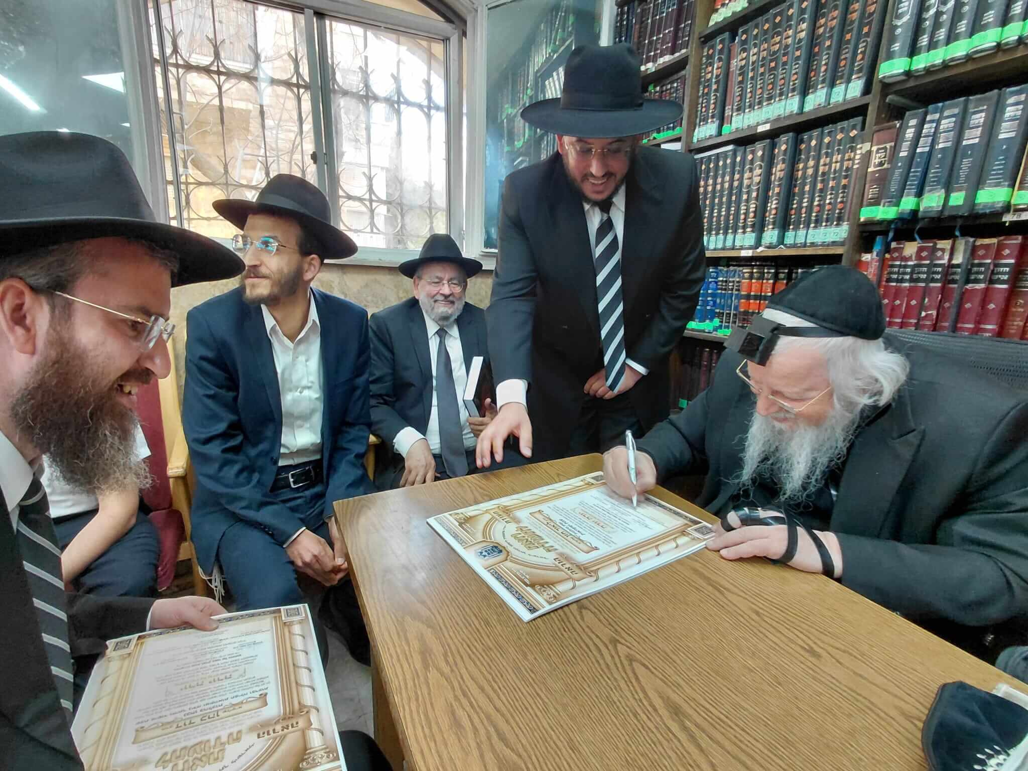 בבית מדרשו של מרן הגאב"ד שליט"א נערך מעמד סיום כתיבת האותיות לספר תורה שיוכנס למוסדות "תורה וחיים" בקריית אתא, ובצידו חתימה על תעודות הוראה לאברכי הכולל.