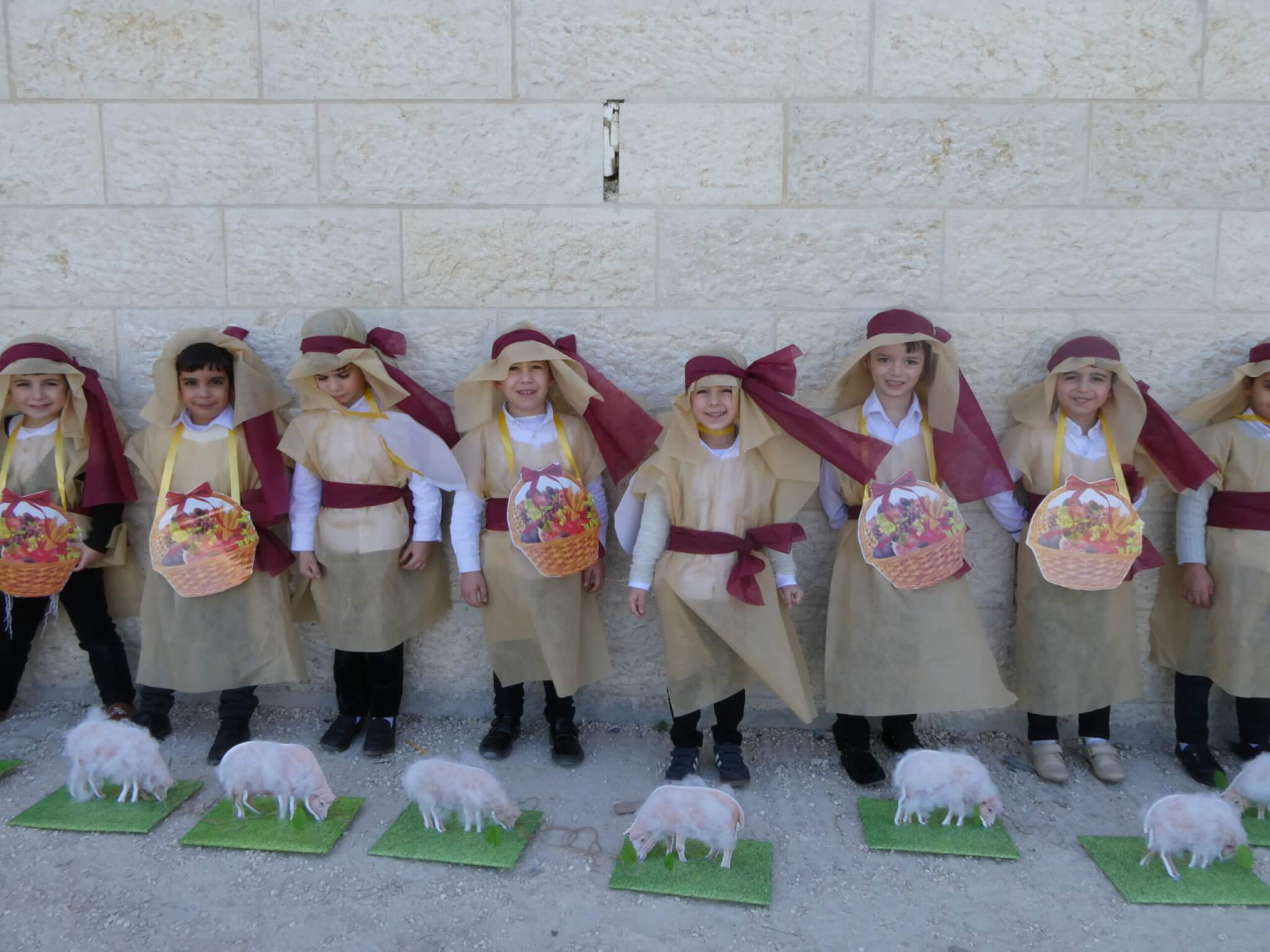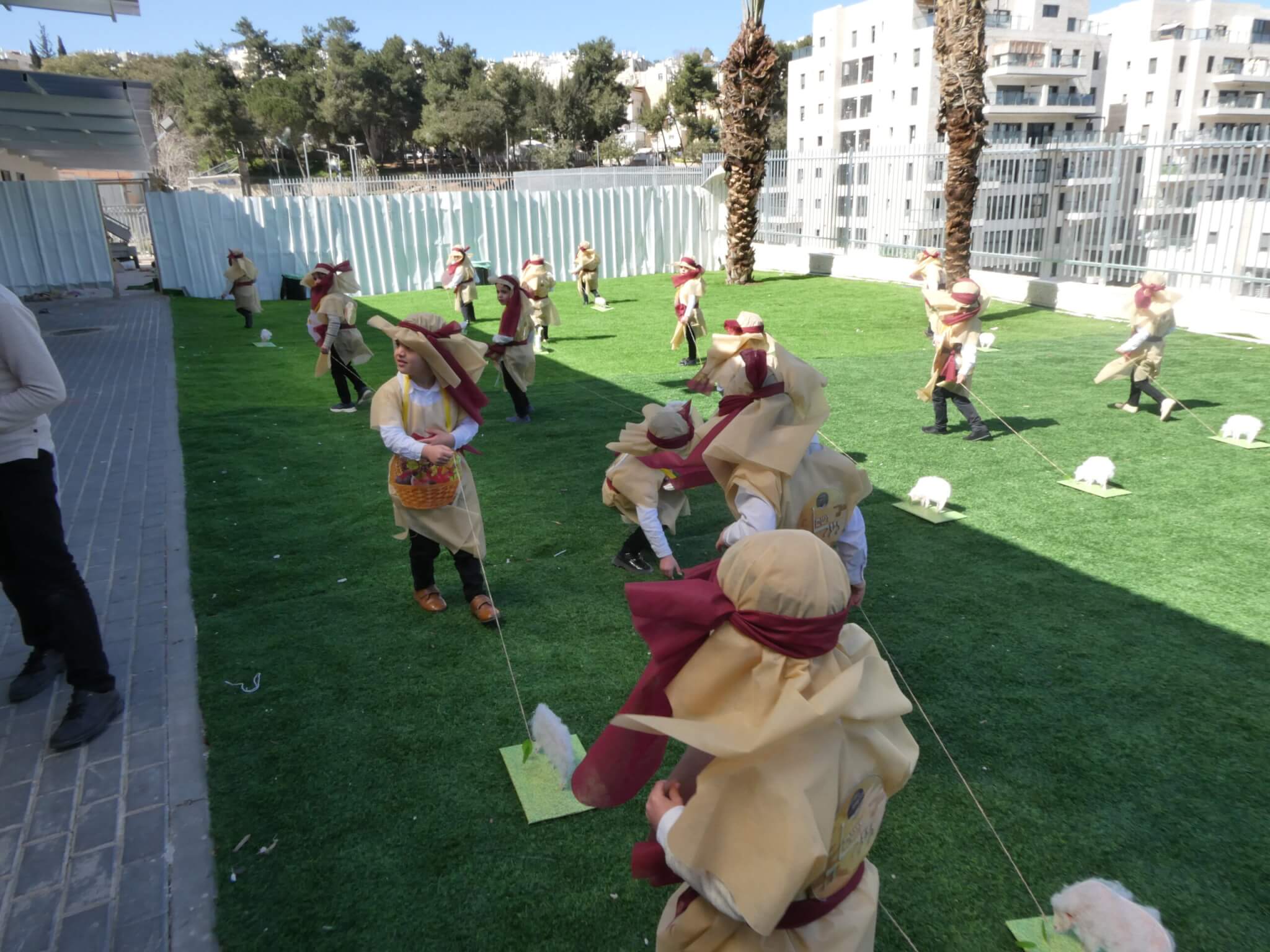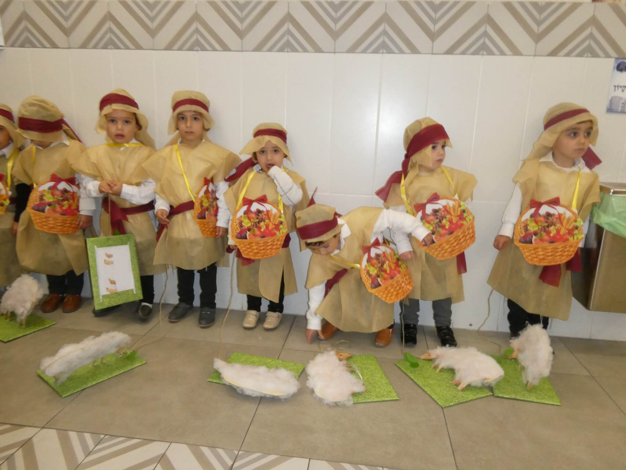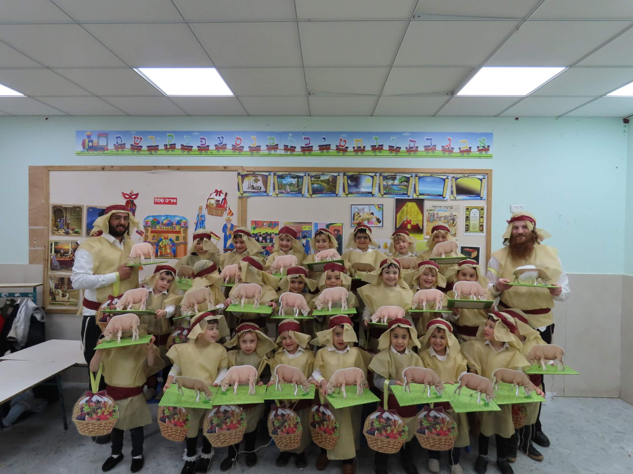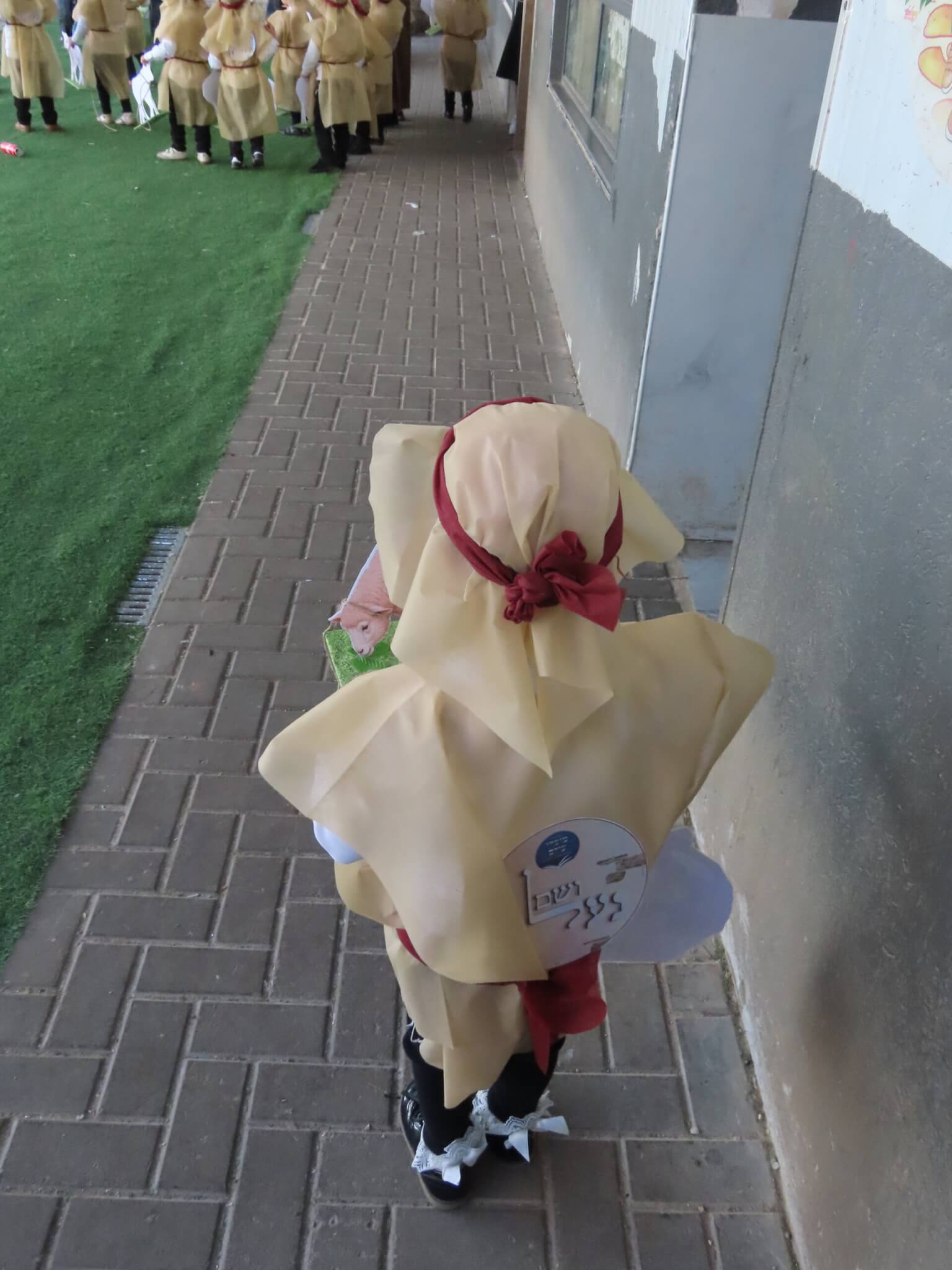תחפושת מיוחדת הוכנה לתלמידי הכיתות הנמוכות ברשת הת"תים היוקרתית 'מוסדי עולם', אשר כללה לבוש מיוחד המאפיין את תקופת העלייה לרגל לירושלים, לצד 'שה בן שנה' המחובר בחוט לתלמיד ונגרר אחריו, וכן טנא מלא ביכורים מראשית פי האדמה.