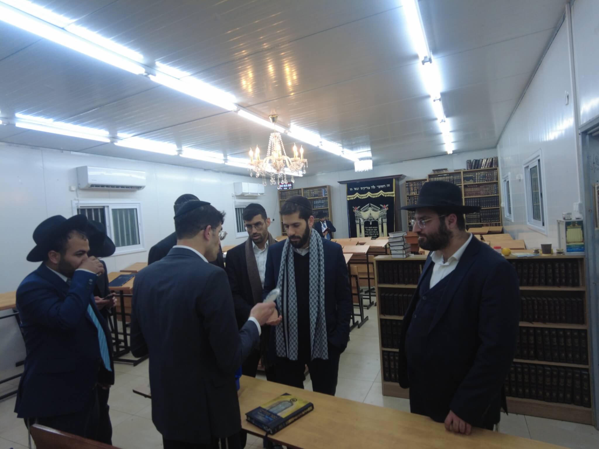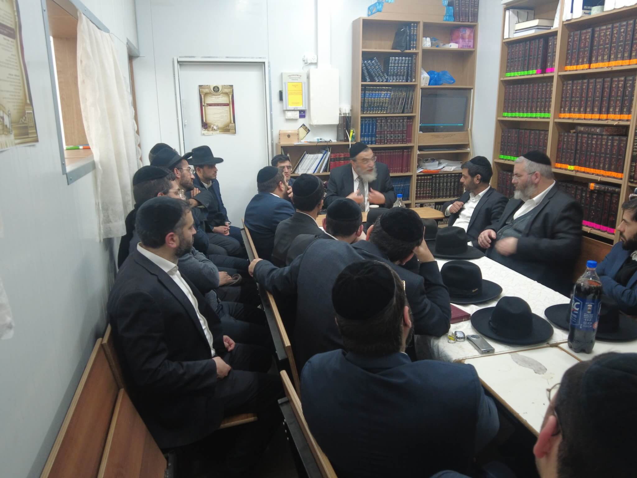למרות המצב הביטחוני המתוח והאזעקות הנשמעות מפעם לפעם, התקיים הוועד הקבוע של האברכים שעסק בדרכי החינוך לאהבת התורה לאור ימי הפורים. עם סיום הוועד נשמעה אזעקה, והאברכים ירדו יחד עם ראש הישיבה למרחב המוגן – שם נשמעו דברי חיזוק בגדרי אמונה ובטחון למעשה. בהמשך קיימו האברכים את מנהג "מעות זכר למחצית השקל" בהידור, באמצעות מטבעות כסף של חצי דולר שהביא עמּו ראש הישיבה.