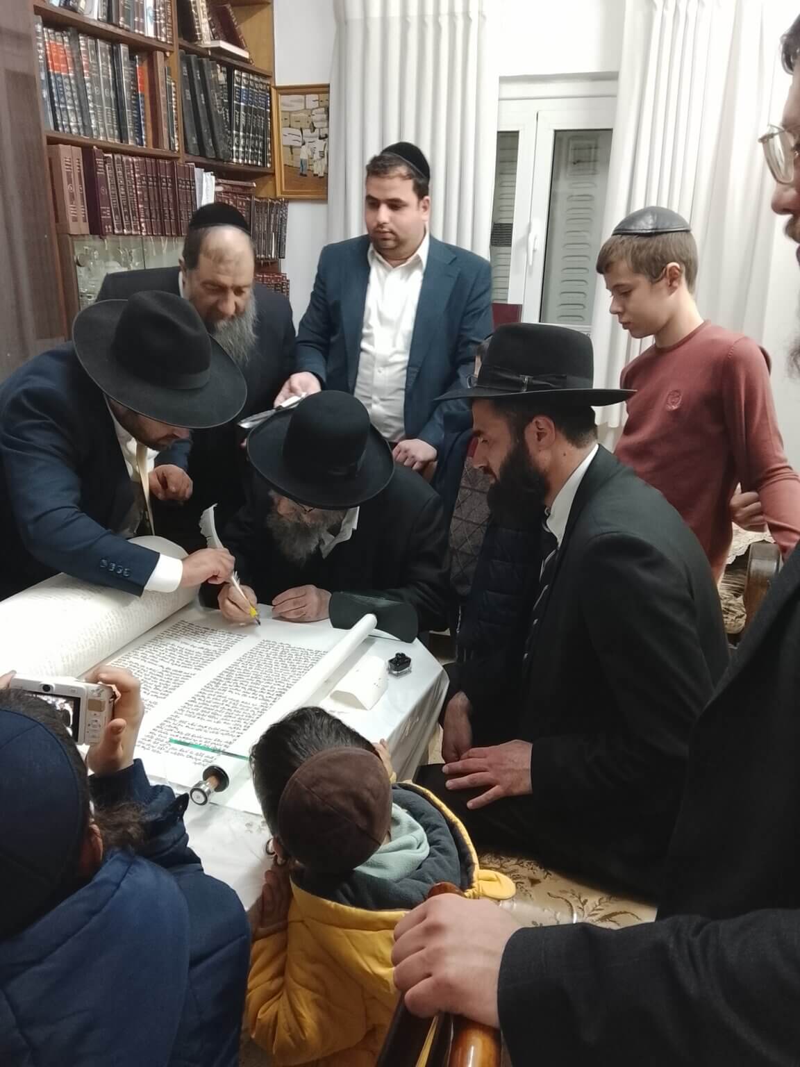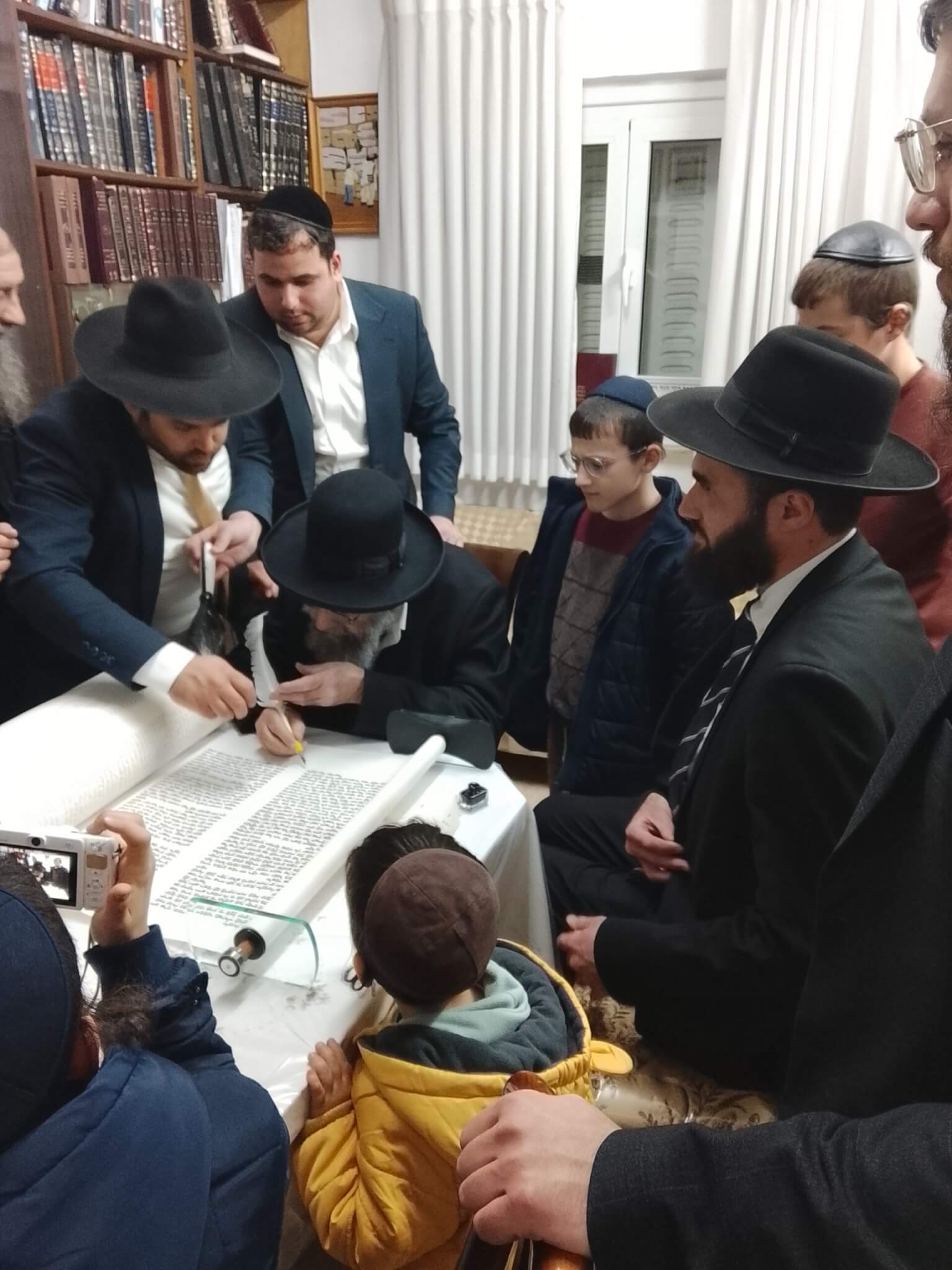 לקראת הכנסת ספר תורה שנתרם על ידי הנדיב הנכבד דוד דואני הי"ו לעילוי נשמת אביו כלאפו בן ססיא ז"ל, עלו בני המשפחה וגבאי בית המדרש למעונם של גדולי ישראל לכתיבת האותיות לקראת המעמד שייערך ביום שני, כ"ז באדר תשפ"ו, באשדוד
