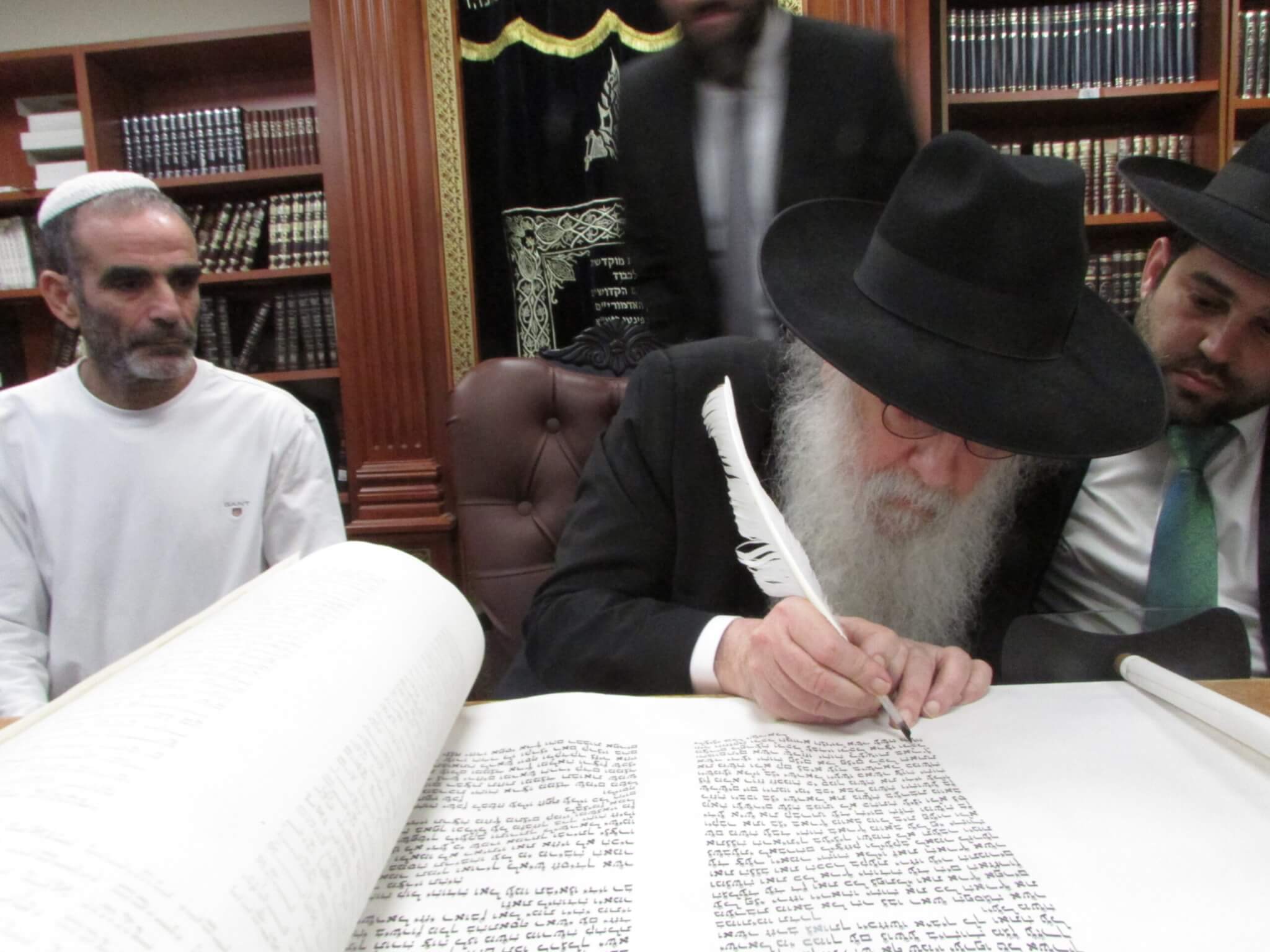 ספר התורה נתרם על ידי הנדיב הנכבד דוד דואני הי"ו לעילוי נשמת אביו, כלאפו בן ססיא ז"ל, ובמסגרת ההכנות למעמד המרומם עלו בני המשפחה יחד עם גבאי בית המדרש למעונם של מרנן ורבנן גדולי ישראל שליט"א, אשר נטלו חלק בכתיבת האותיות בספר התורה.