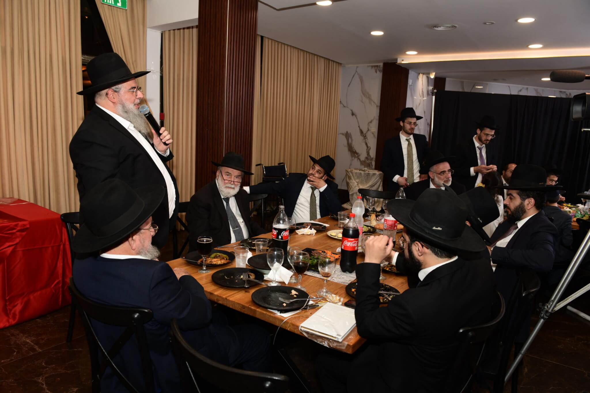 לאחר מכן התקיימה סעודת מצווה חגיגית, וגם בה נמשכו מעגלי השמחה והריקודים. במעמד השתתף ונשא דברים ראש הישיבה, הגאון האדיר רבי מנשה אביעזרי שליט"א, שחיזק את בני הקהילה בדברי התעוררות לכבוד התורה ולומדיה.