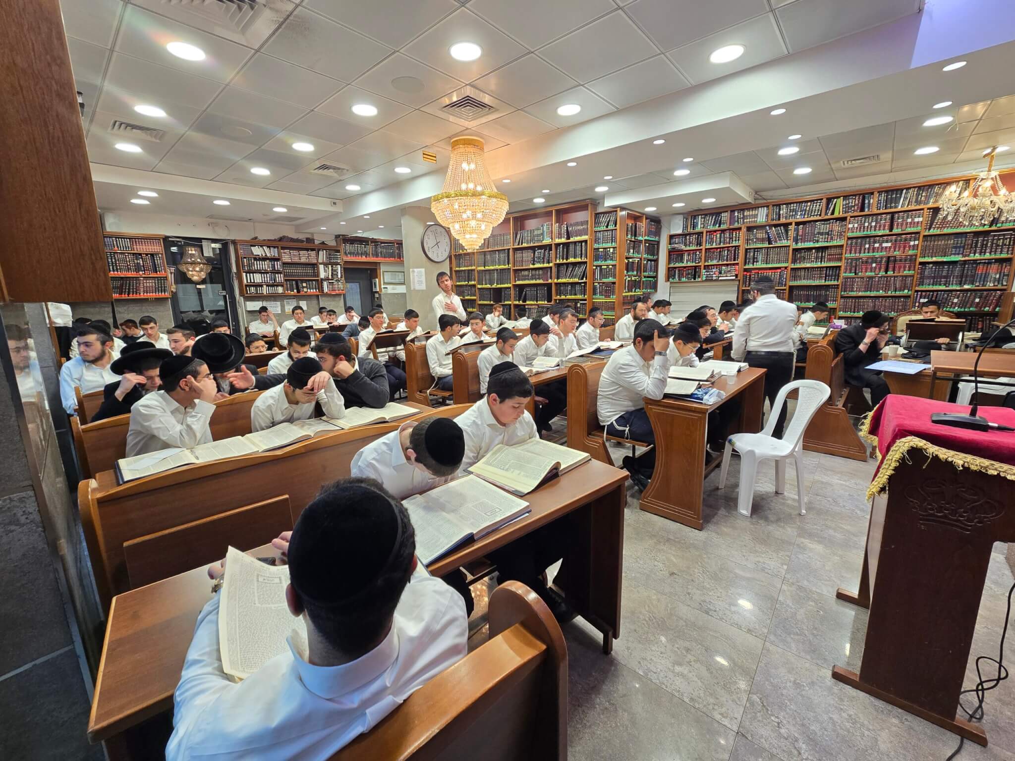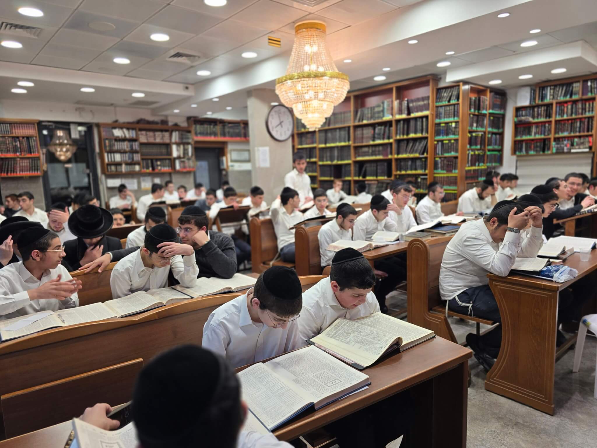 בהיכל ישיבת בין הזמנים המרכזית הפועלת באזור שמואל הנביא, גוש שמונים, גאולה, מקור ברוך והסביבה, נפתחה ישיבת בין הזמנים בהשתתפות בחורים רבים השוקדים על תלמודם במשך שעות היום.