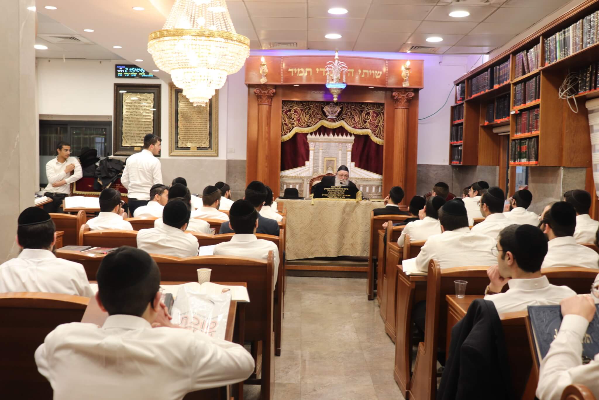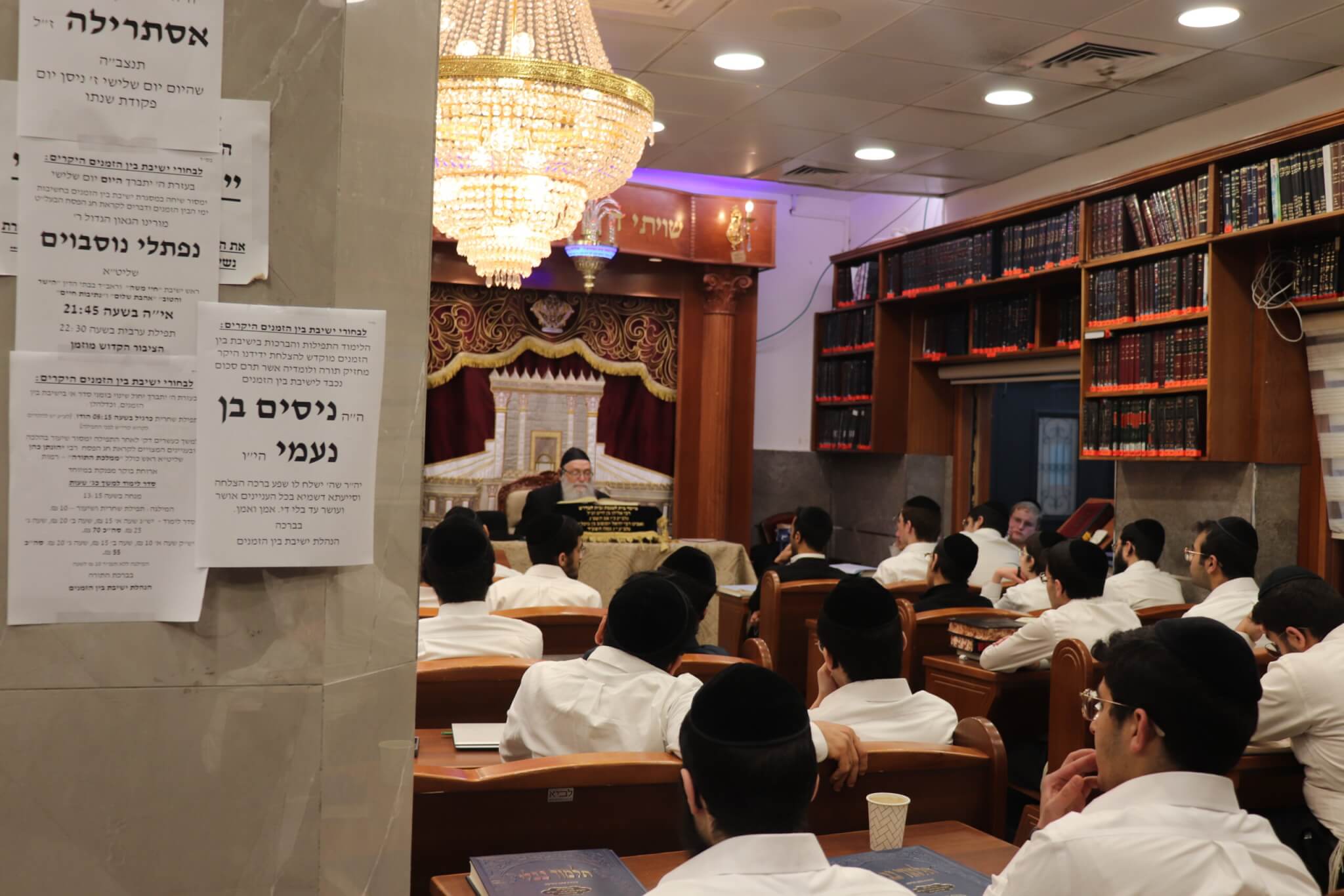 ביום חמישי, ח' בניסן, נשא דברים הגאון רבי שמעון דרור שליט"א, רב המקוואות ונשיא המוסדות, שמסר שיעור קצר בפלפול עמוק בעניין מכירת חמץ, ולאחר מכן חיזק את הבחורים נוכח גזירת הגיוס והאתגרים הרוחניים שבתקופה.