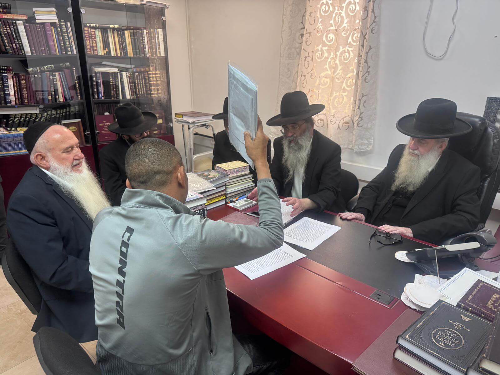 רב קהילות האברכים באופקים הגאון הגדול רבי יוסף אביטל שליט"א במעמד מכירת חמץ בעיר בלשכן רב העיר הגאון הגדול רבי עמרם אוחיון שליט"א