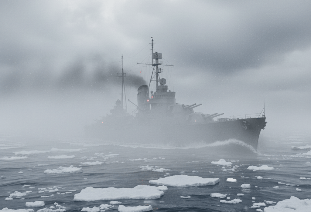 הימים היו ימי מלחמת העולם השנייה, והכוח הימי כלל נושאת מטוסים, משחתות וספינות סיור קטנות, ושייט לאורך המים הקפואים של ים נורבגיה, במרחב שבין האי לופוטן לעיר הנמל בודה, בדרכו למהלך מכריע שנקרא לימים 'מבצע לידר'.