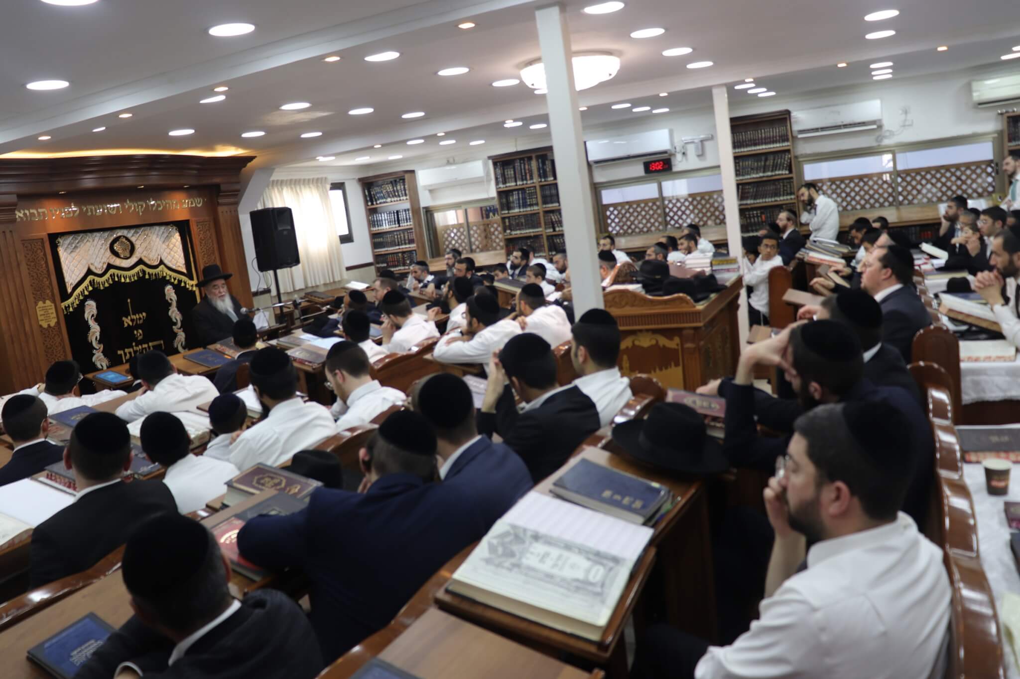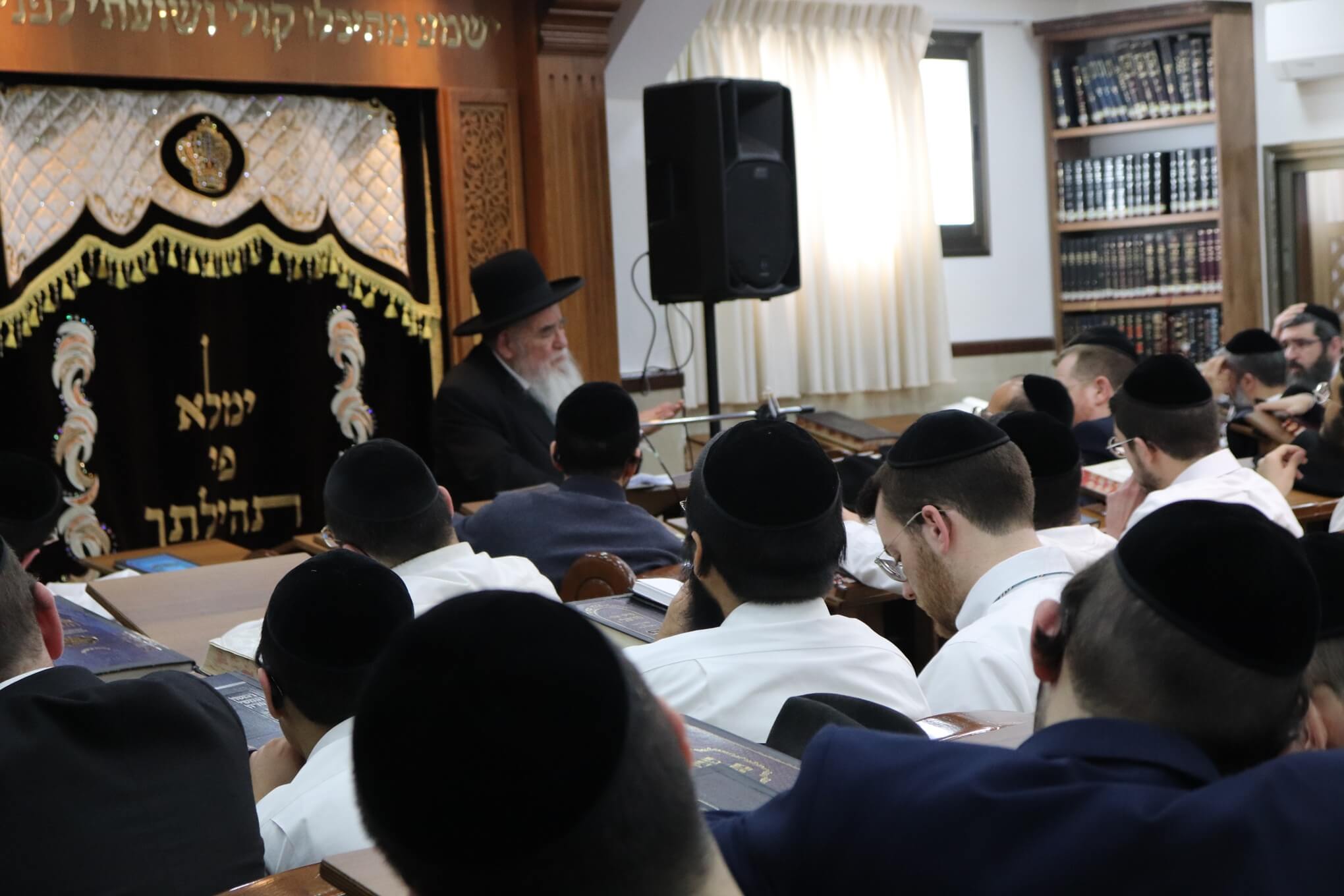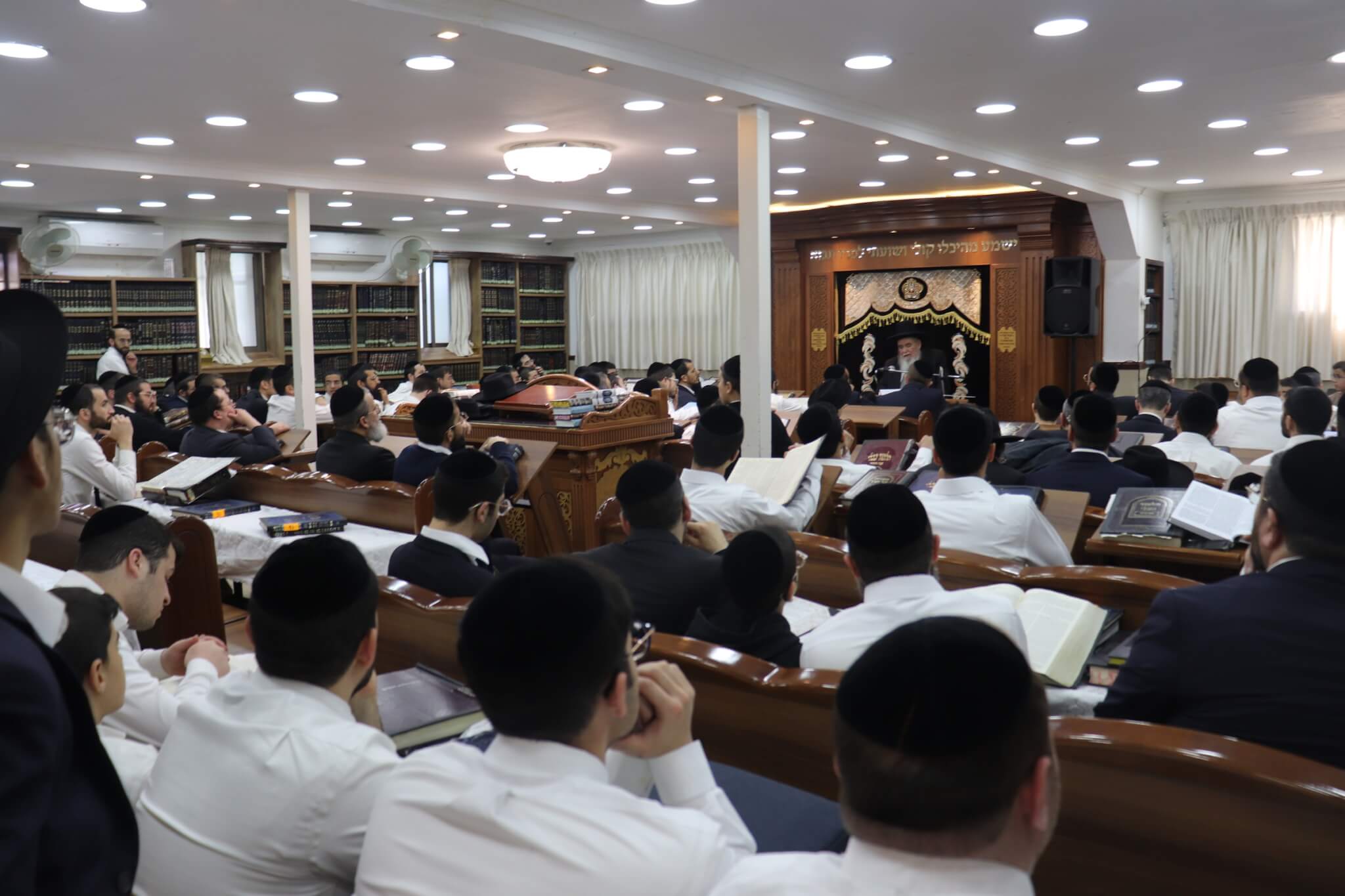 עוד בטרם תחילת המעמד הורגשה התרגשות רבה במקום, כאשר אברכים רבים מכל רחבי השכונה התאספו לבית המדרש כדי לקדם את בואו של ראש הישיבה. בית המדרש נמלא מפה לפה, עד אפס מקום, והקהל הרב עמד דרוך לקבל את דבריו.