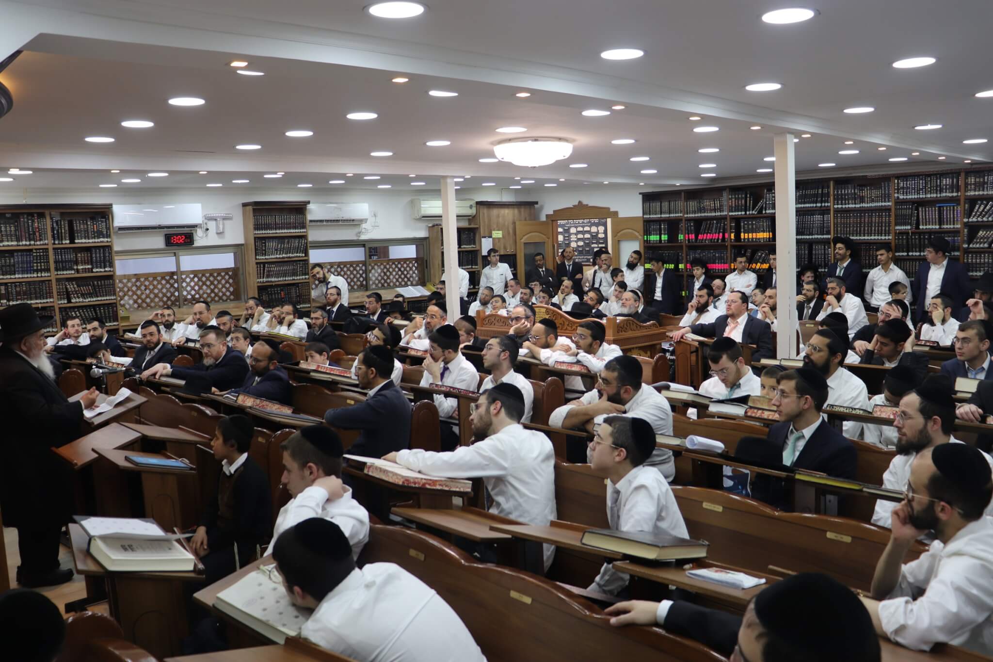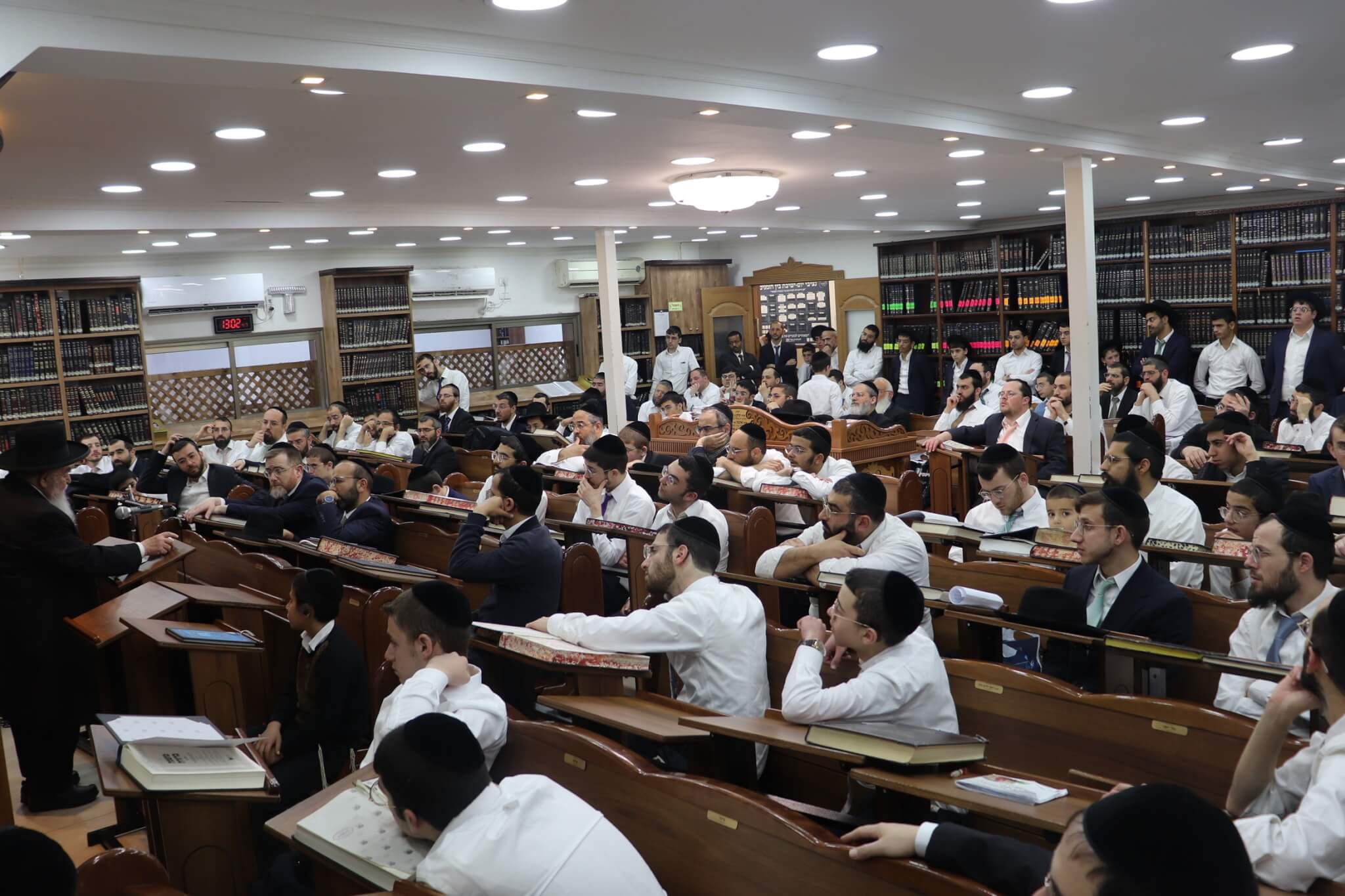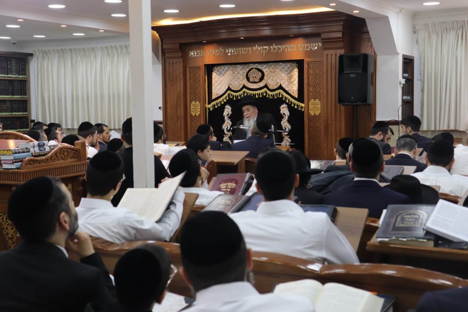 עוד בטרם תחילת המעמד הורגשה התרגשות רבה במקום, כאשר אברכים רבים מכל רחבי השכונה התאספו לבית המדרש כדי לקדם את בואו של ראש הישיבה. בית המדרש נמלא מפה לפה, עד אפס מקום, והקהל הרב עמד דרוך לקבל את דבריו.