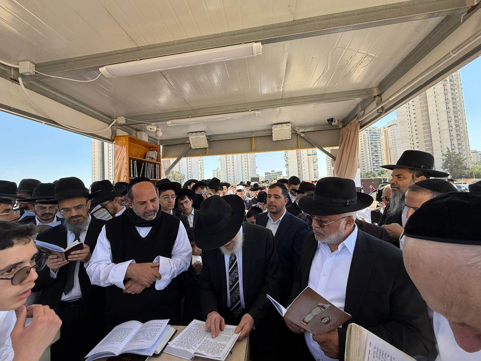 לנוכח המצב הקשה השורר בארץ, נערך בצהרי היום מעמד תפילה וזעקה מרכזי על הציון, בראשות אחיו ראש הישיבה הגאון רבי צמח מאזוז, גיסו המקובל הגאון רבי יצחק ברדא, תלמידו המובהק הגאון רבי אברהם מאדאר ובנו הגאון רבי גדעון מאזוז. הרבנים נשאו תפילה למען עם ישראל ולהצלחת המערכה בכל החזיתות.