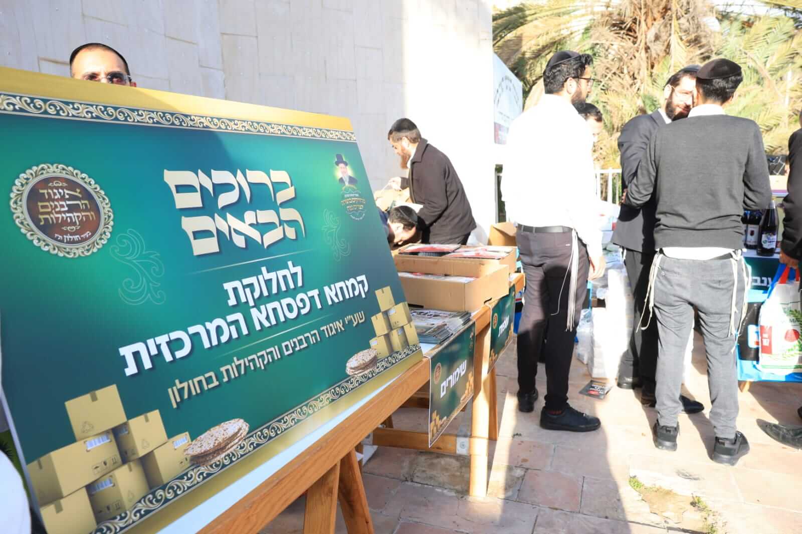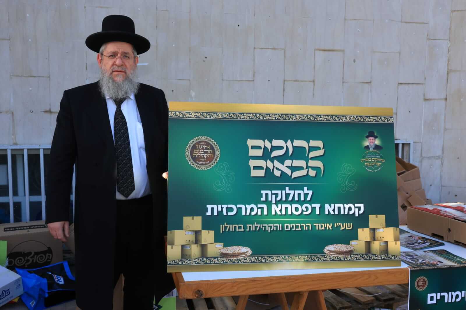 ימים ספורים קודם חג הפסח התקיימה בעיר חולון חלוקת קמחא דפסחא רחבת היקף, במסגרתה קיבלו כ־200 משפחות סלי מזון מכובדים ומלאים בכל טוב, כדי שיוכלו להיכנס לימי החג מתוך הרחבת הדעת, כבוד ושמחה.